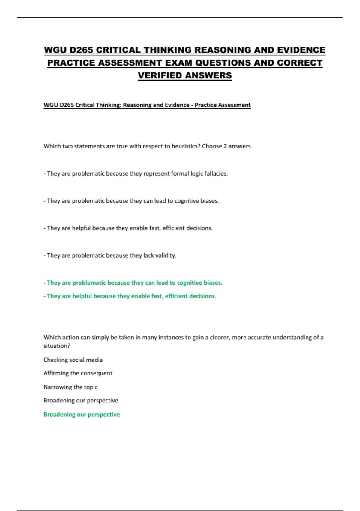 WGU D265 CRITICAL THINKING REASONING AND EVIDENCE PRACTICE ASSESSMENT EXAM QUESTIONS AND CORRECT VERIFIED ANSWERS