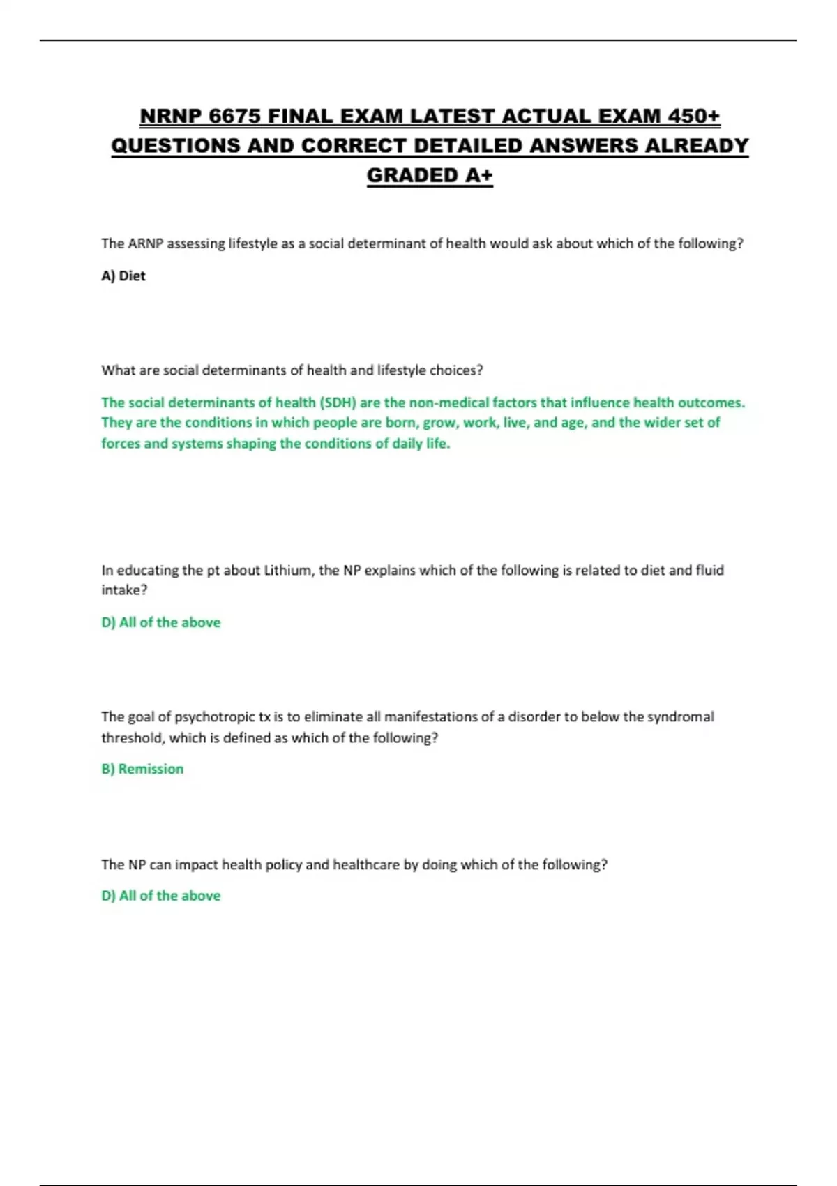 NRNP 6675 FINAL EXAM LATEST ACTUAL EXAM 450+ QUESTIONS AND CORRECT DETAILED ANSWERS ALREADY GRADED A+