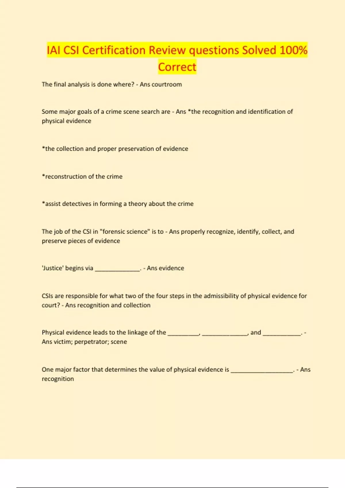 The final analysis is done where? - Ans courtroom Some major goals of a crime scene search are - Ans *the recognition and identification of physical evidence *the collection and proper preservation of evidence *reconstruction of the crime *assist detectives in forming a theory about the crime