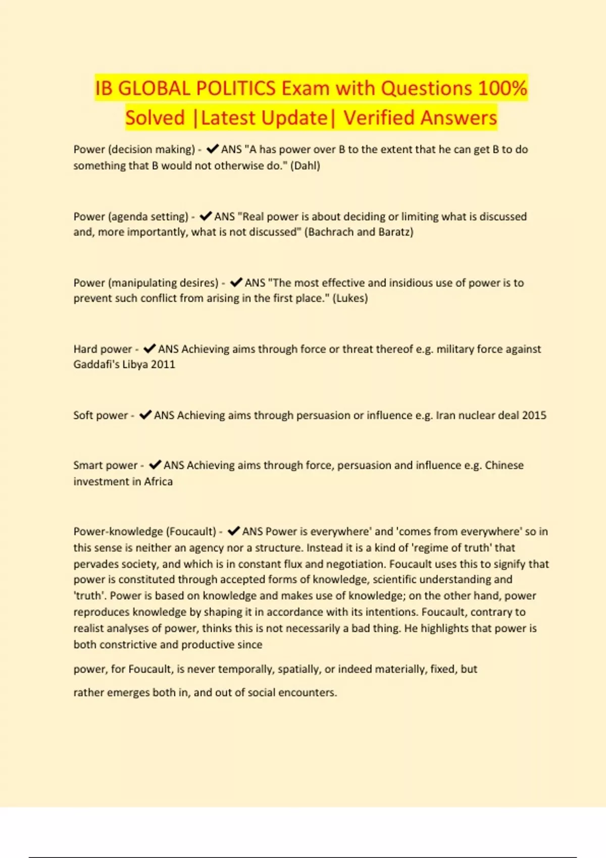 IB GLOBAL POLITICS Exam with Questions 100% Solved |Latest Update| Verified Answers