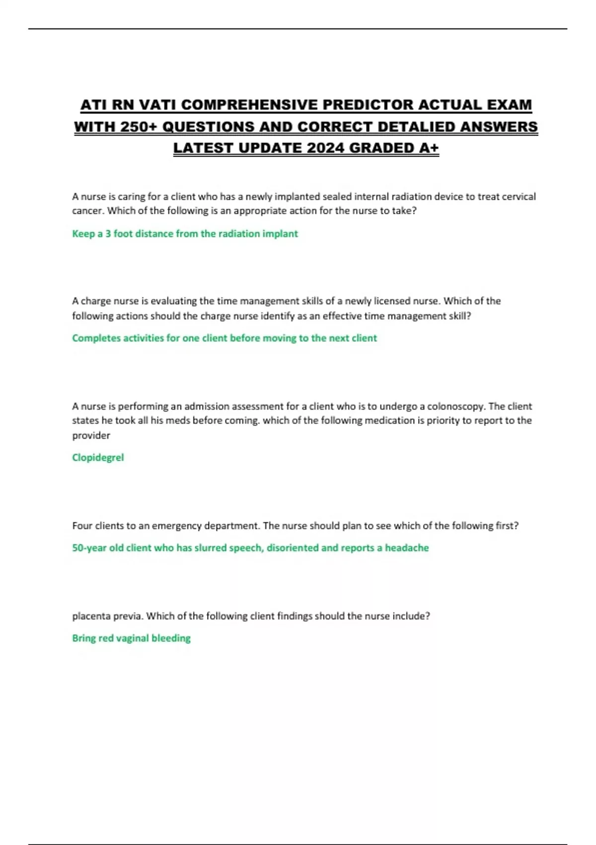 ATI RN VATI COMPREHENSIVE PREDICTOR ACTUAL EXAM WITH 250+ QUESTIONS AND CORRECT DETALIED ANSWERS LATEST UPDATE 2024 GRADED A+
