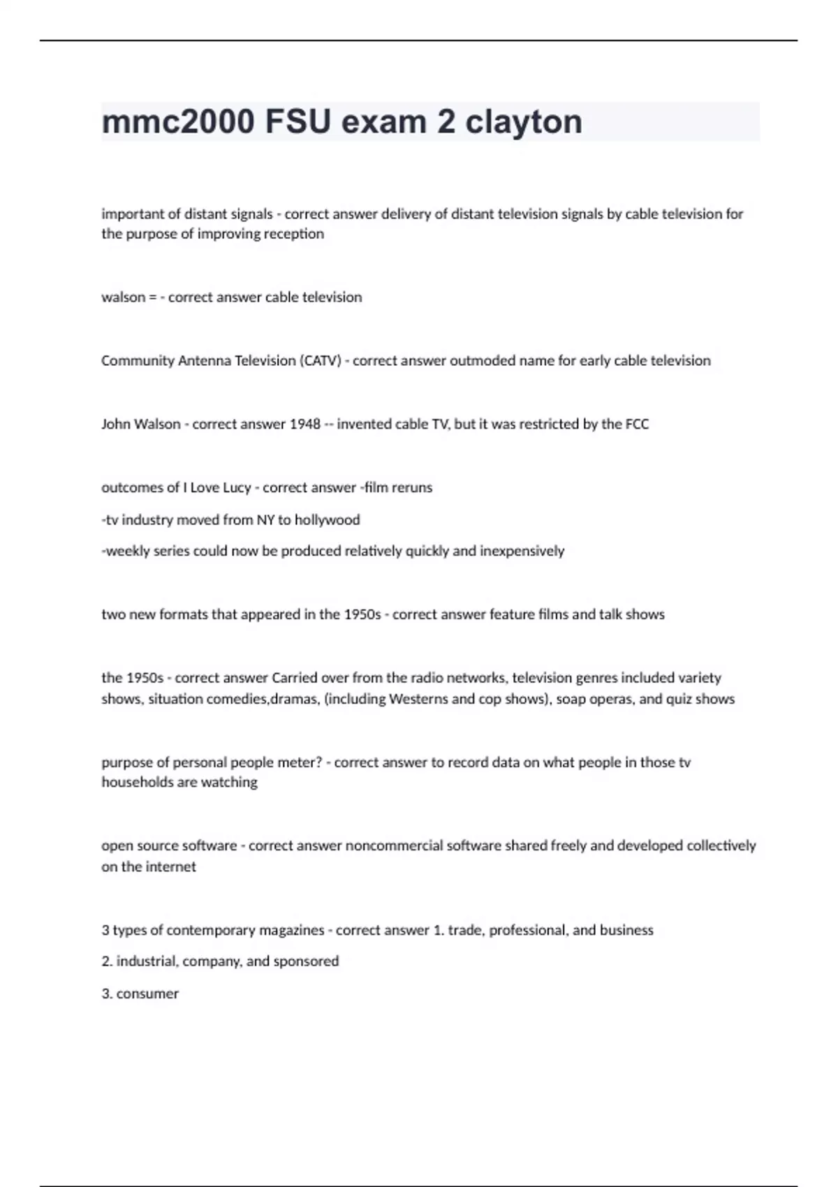 walson = - correct answer cable television