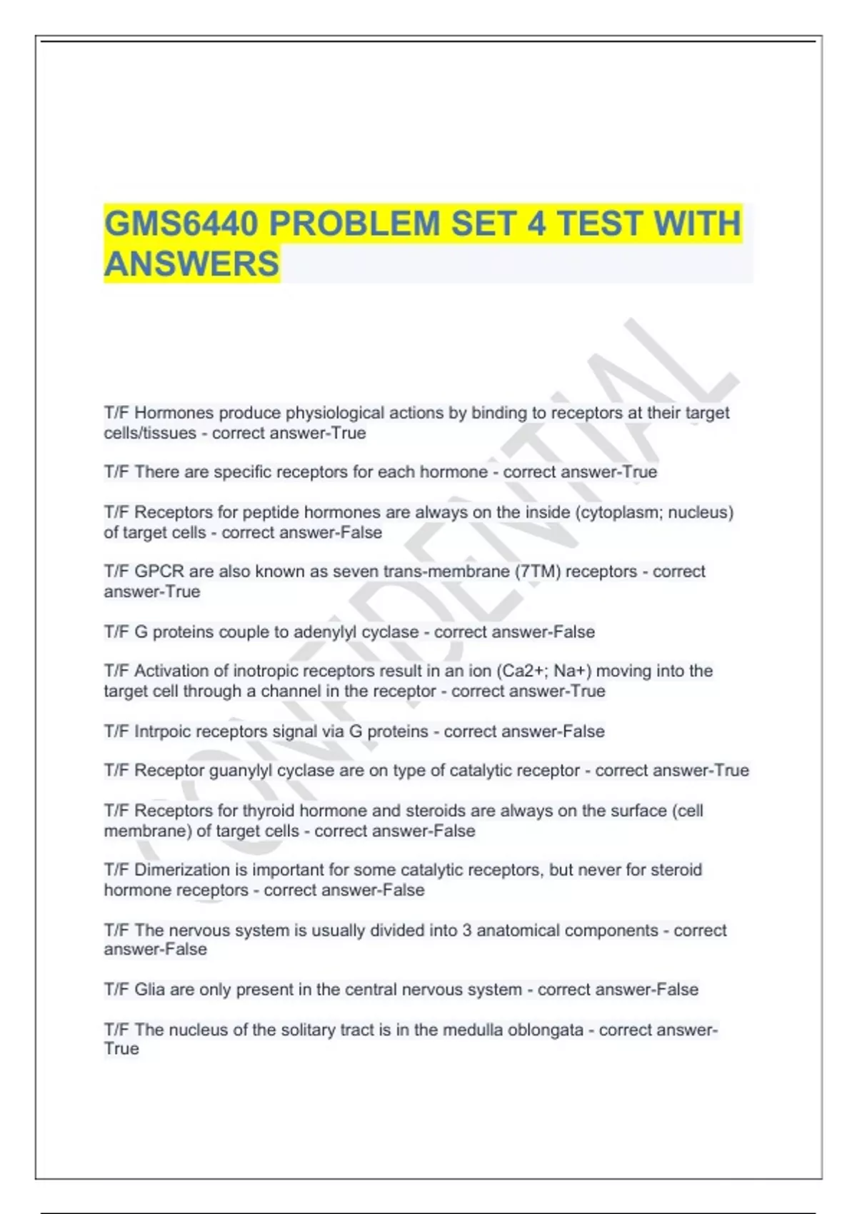 GMS6440 PROBLEM SET 4 TEST WITH ANSWERS