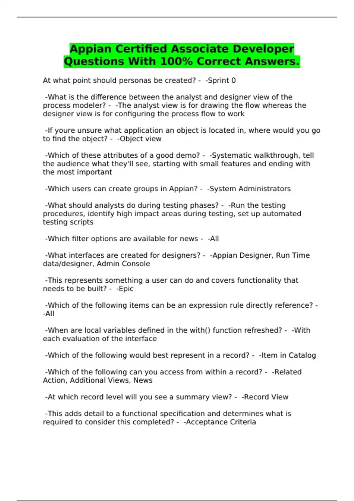 Appian Certified Associate Developer Questions With 100% Correct Answers.