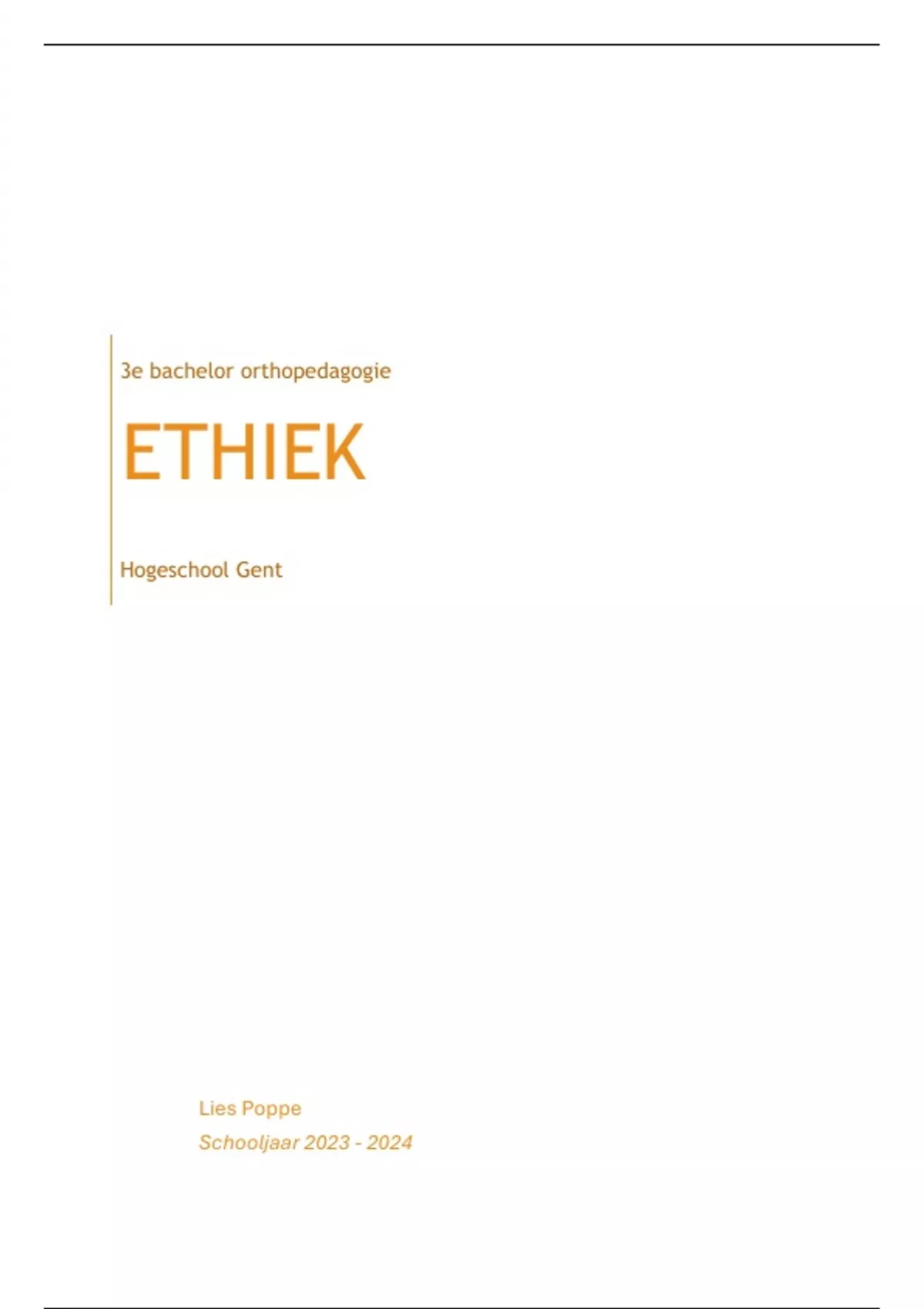 Volledige samenvatting van ethiek, 2e semester adhv de cursus, eigen notities en de ppt’s. Zeer uitgebreid!