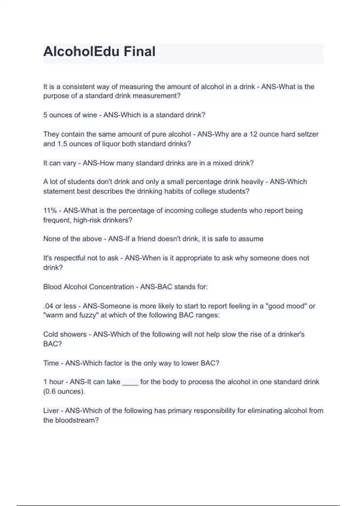 - Alcohol edu