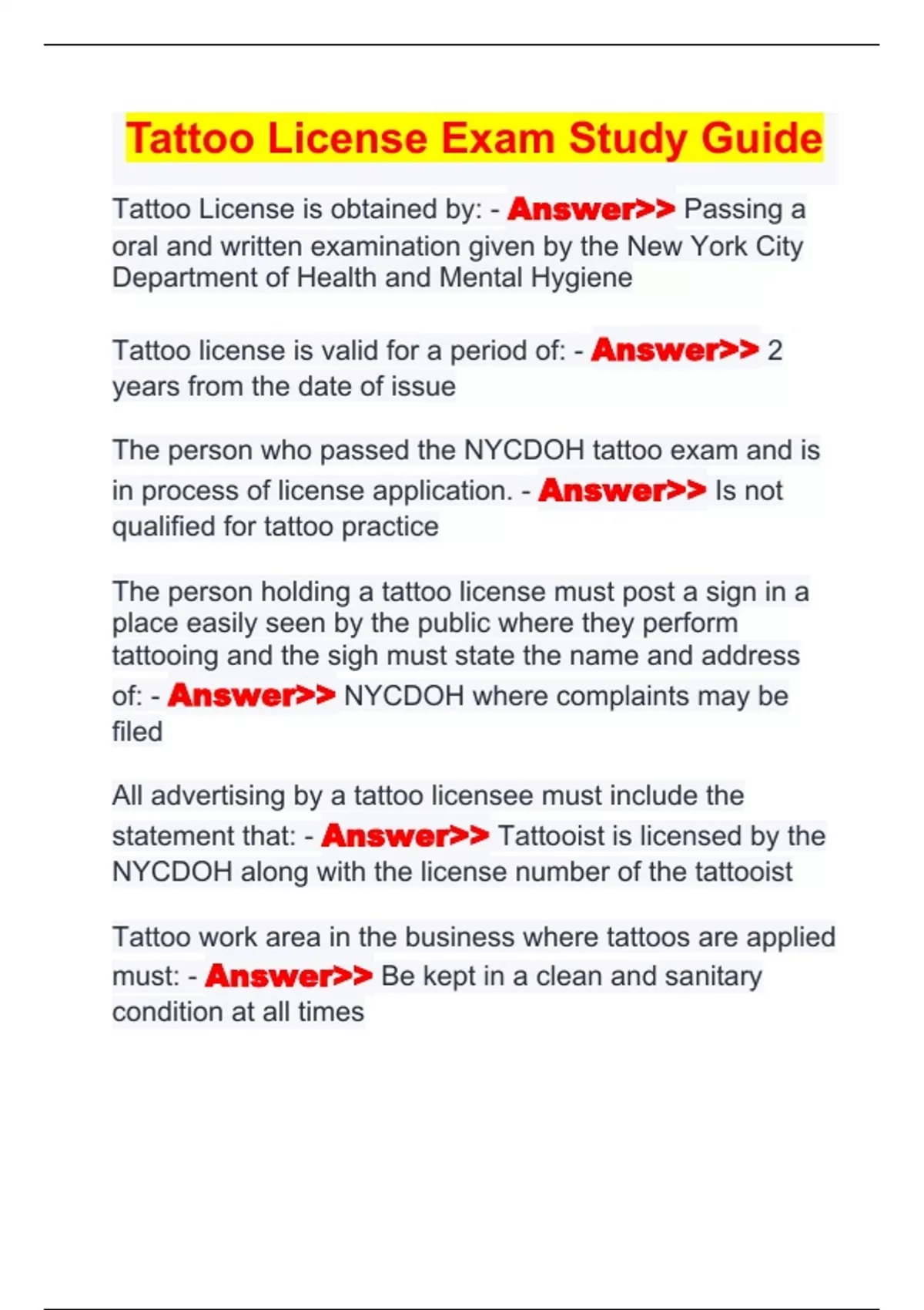Tattoo License Exam Study GuideTattoo License Exam Study Guide