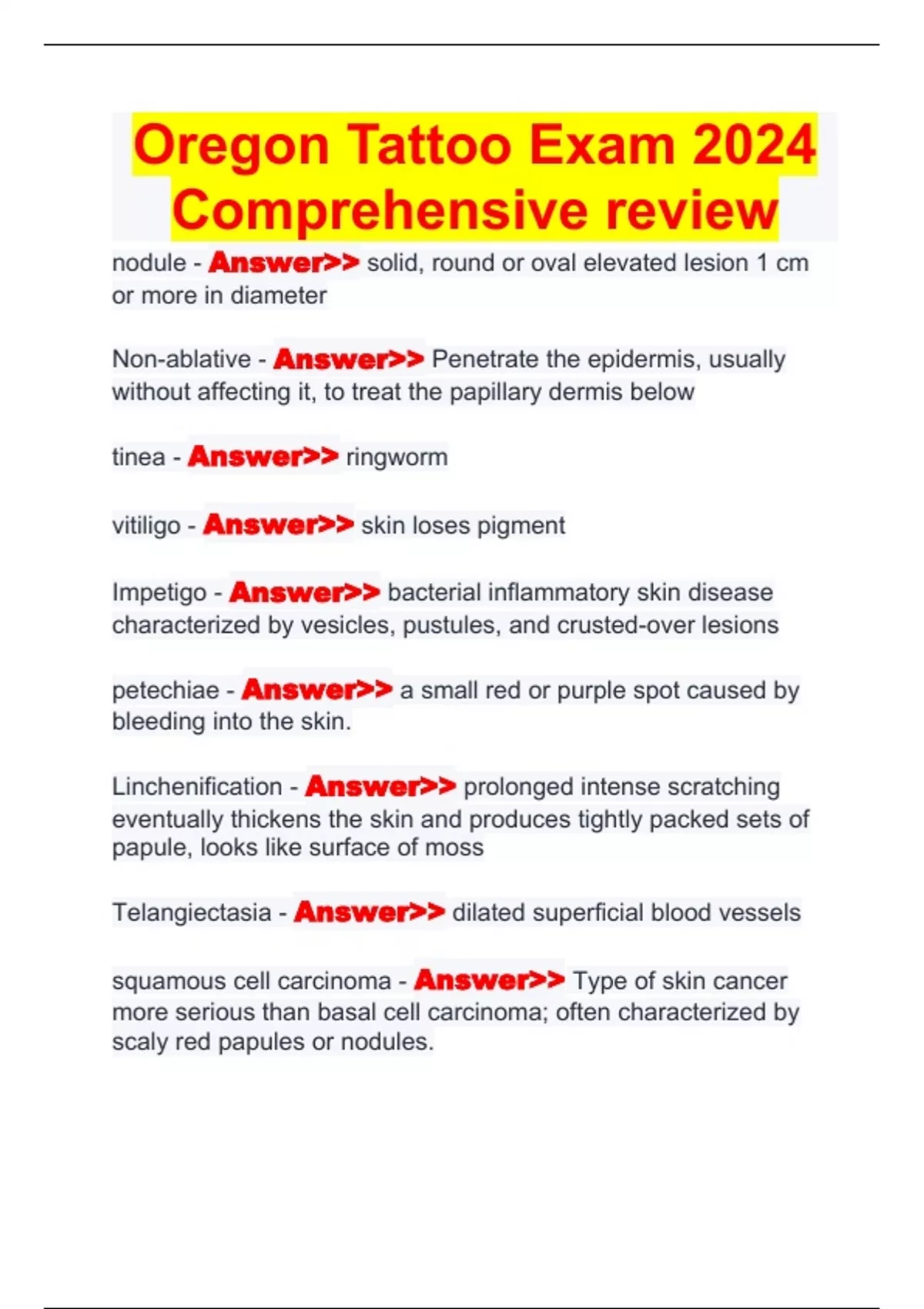 oregon tattoo exam 2024 comprehensive review