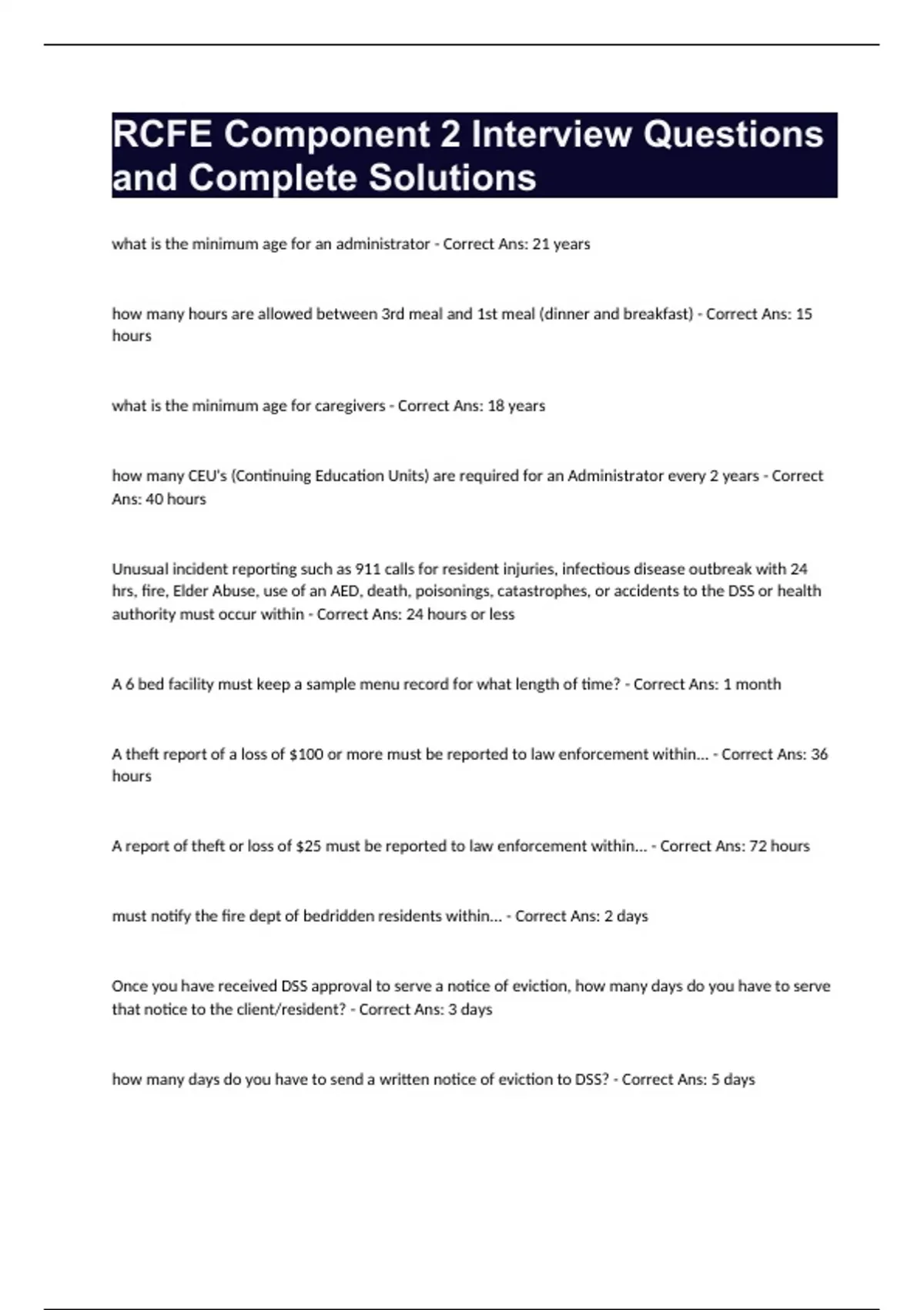 RCFE Component 2 Interview Questions and Complete Solutions