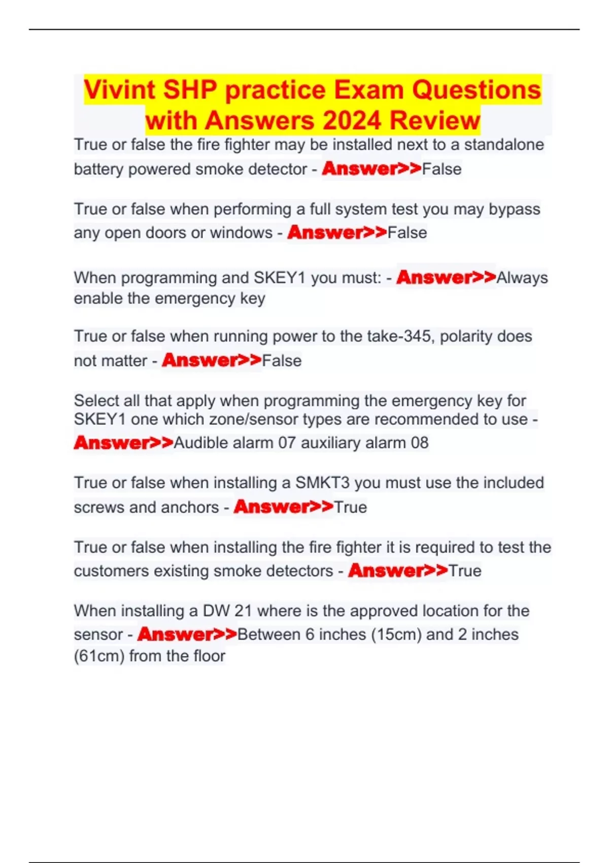 Vivint SHP practice Exam Questions with Answers 2024 Review