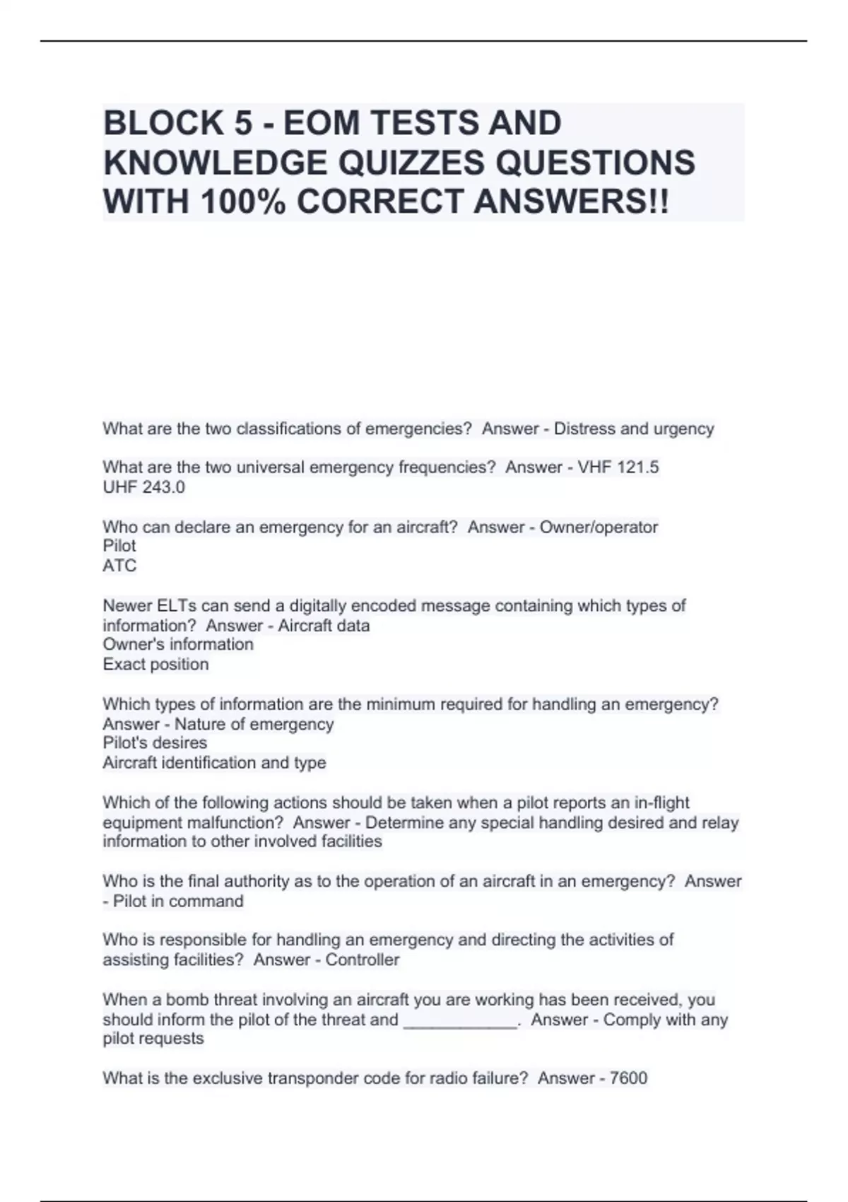 BLOCK 5 - EOM TESTS AND KNOWLEDGE QUIZZES QUESTIONS WITH 100% CORRECT ANSWERS!!