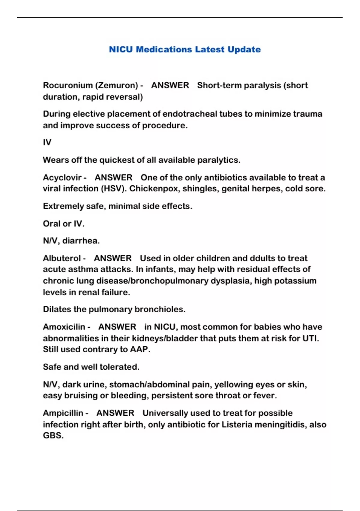 NICU Medications Latest Update...