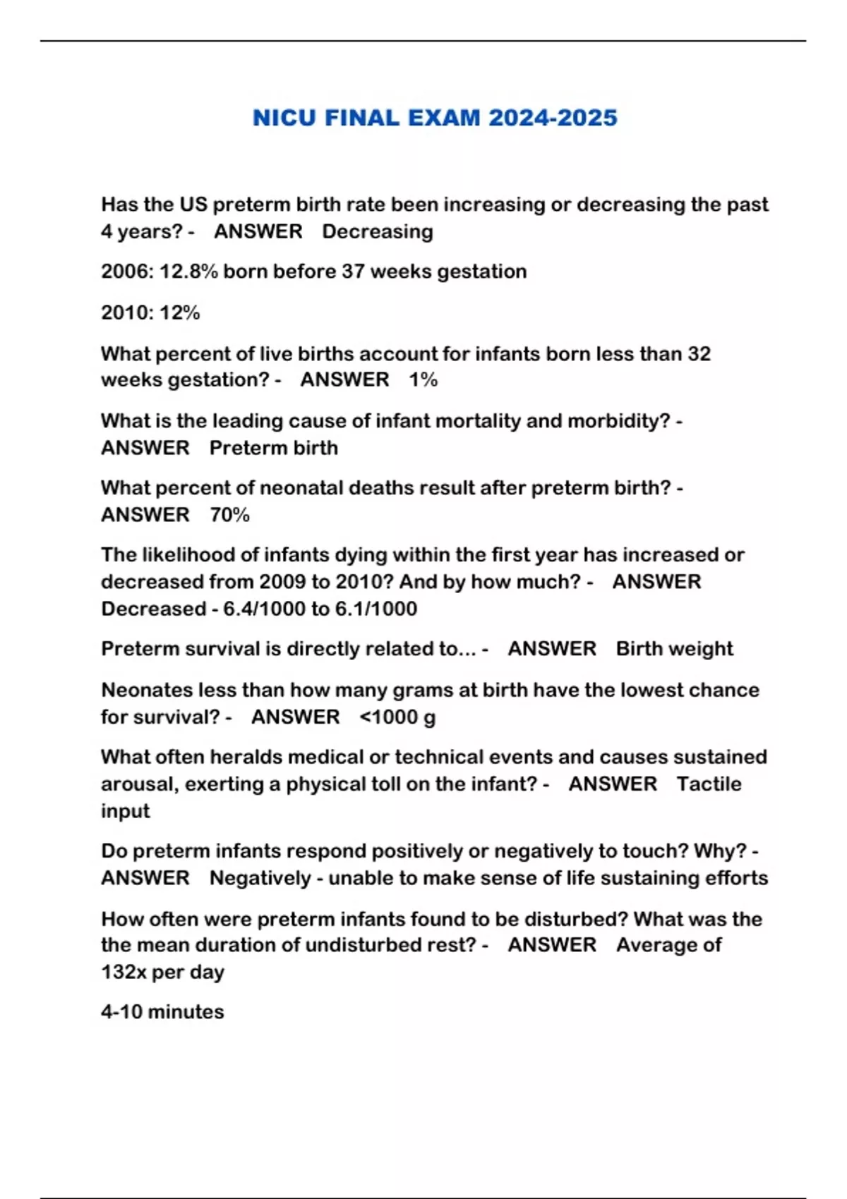 NICU/Neonatal Intensive Care Unit -NICU Packaged EXAMS 2024/2025