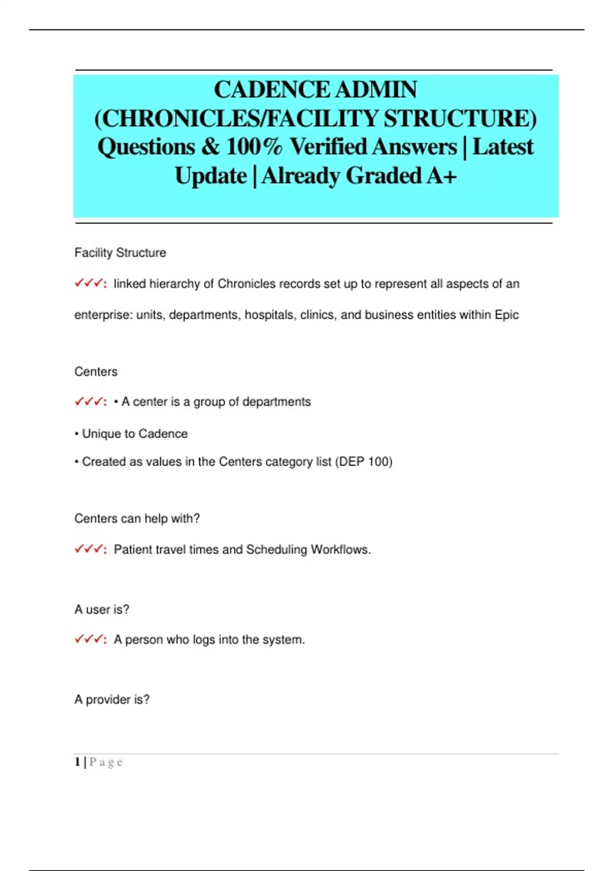 CADENCE ADMIN (CHRONICLES/FACILITY STRUCTURE) Questions & 100% Verified Answers | Latest Update | Already Graded A
