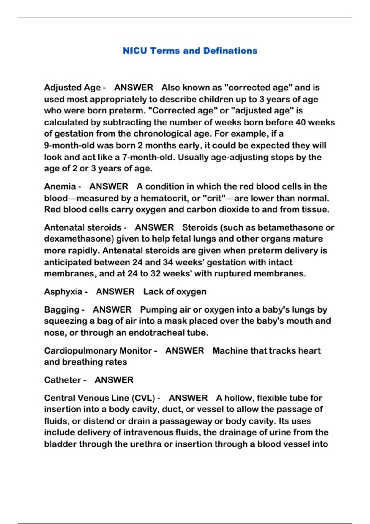 NICU Terms and Definations...