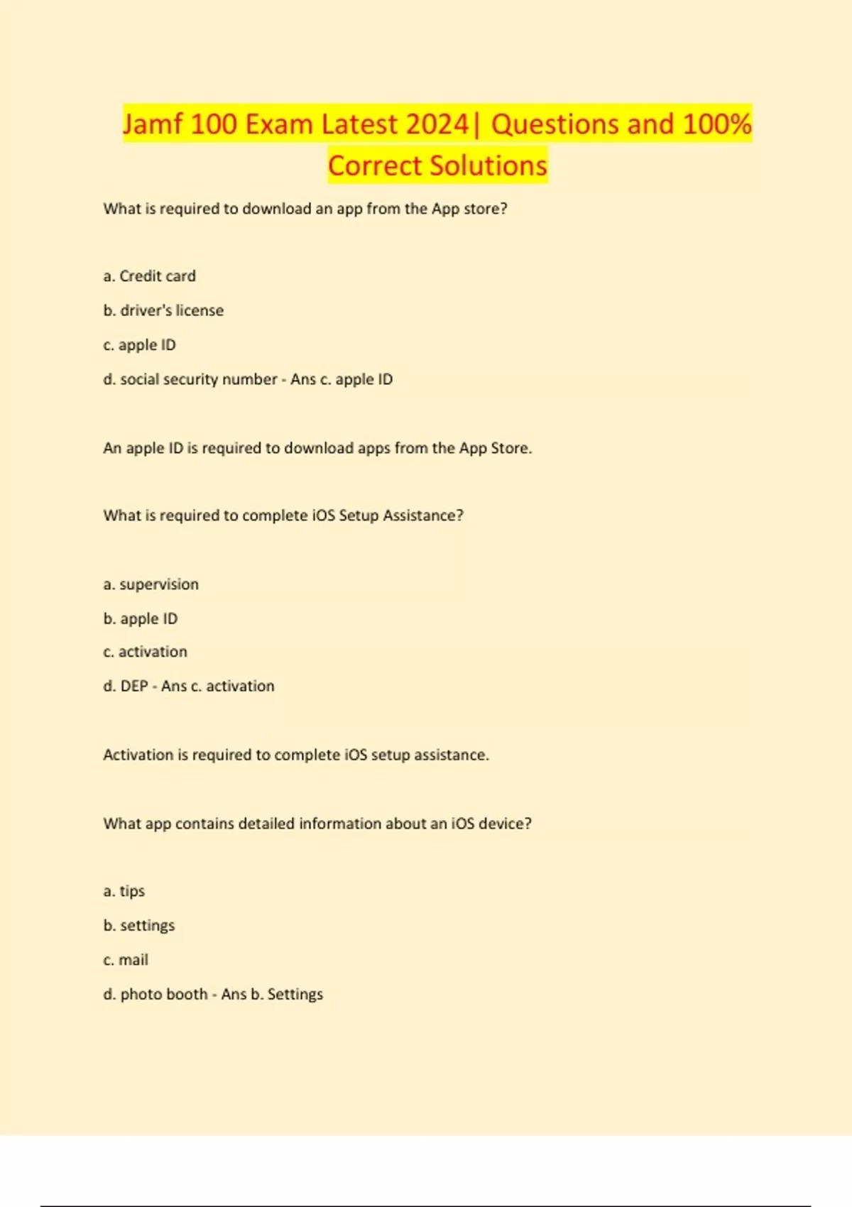 Jamf 100 Exam Latest 2024| Questions and 100% Correct Solutions