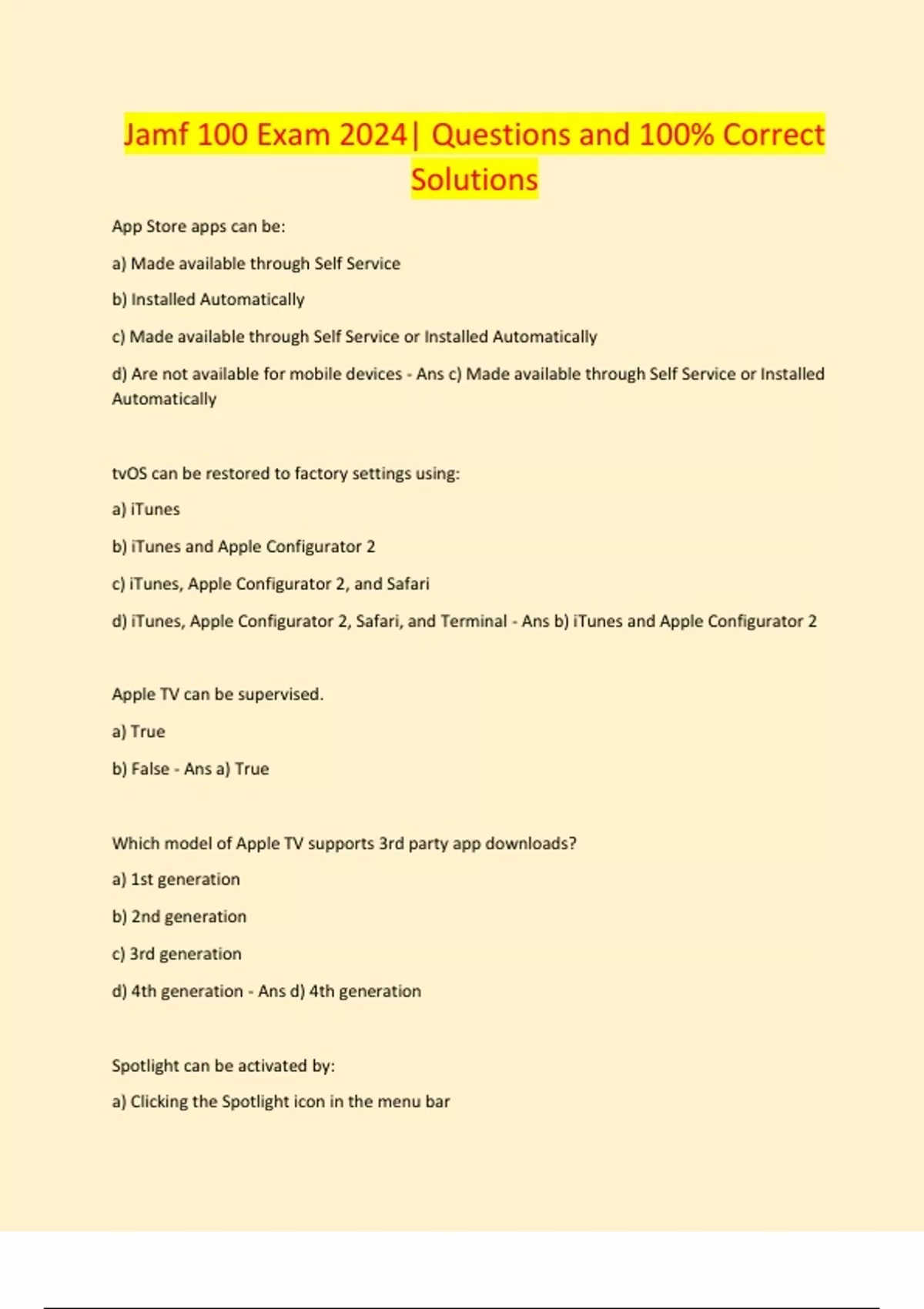 Jamf 100 Exam 2024| Questions and 100% Correct Solutions