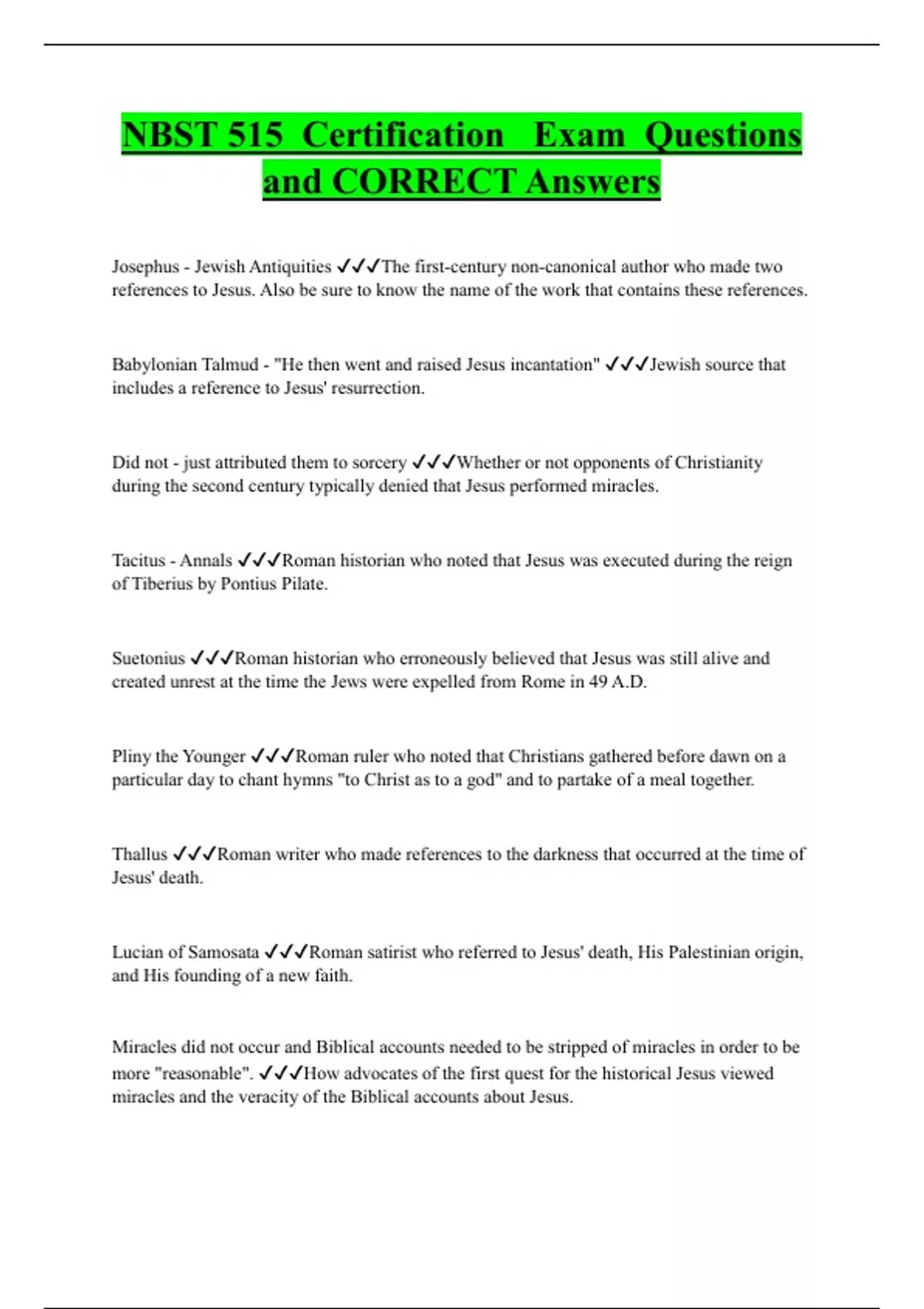 Josephus - Jewish Antiquities The first-century non-canonical author who made two references to Jesus. Also be sure to know the name of the work that contains these references. Babylonian Talmud - "He then went and raised Jesus incantation" Jewish source that includes a reference to Jesus' resurrection. Did not - just attributed them to sorcery Whether or not opponents of Christianity during the second century typically denied that Jesus performed miracles. Tacitus - Annals Roman historian who noted that Jesus was executed during the reign of Tiberius by Pontius Pilate