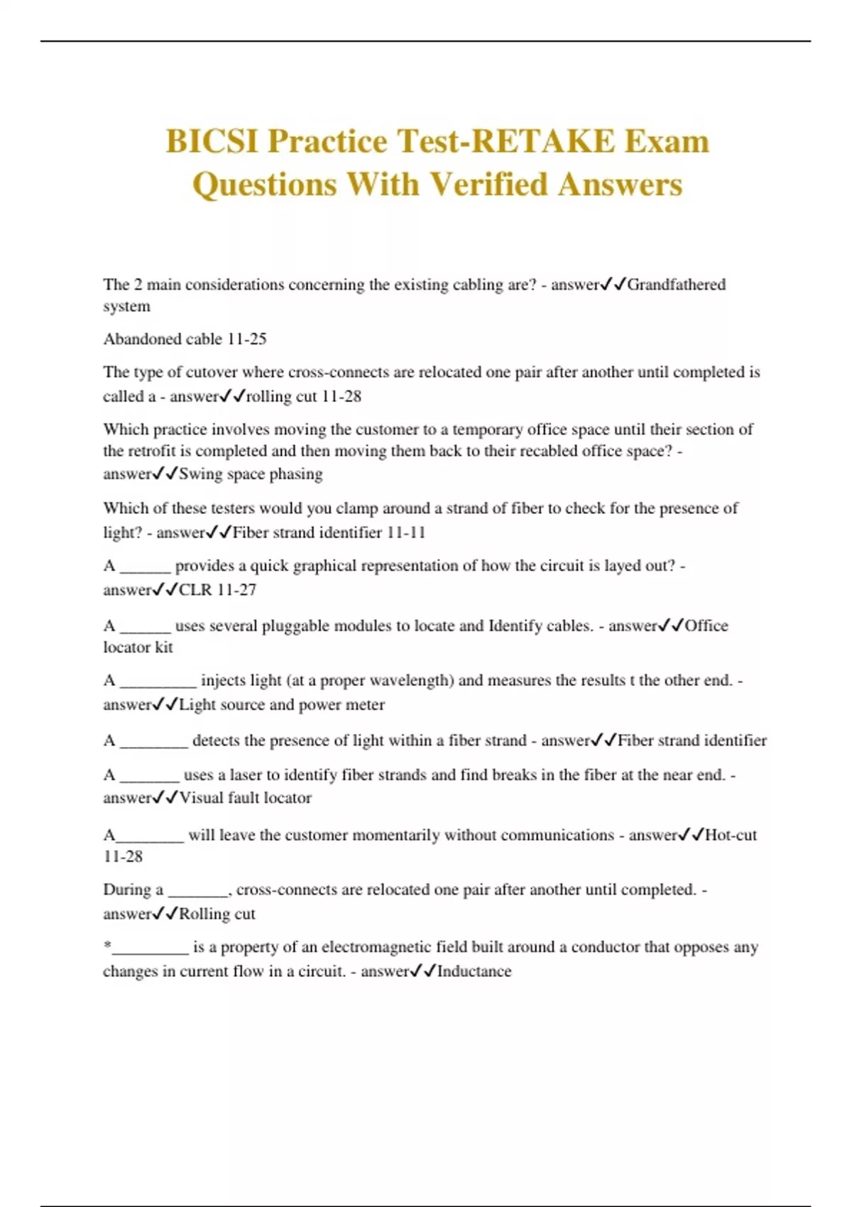 BICSI Practice Test-RETAKE Exam Questions With Verified Answers