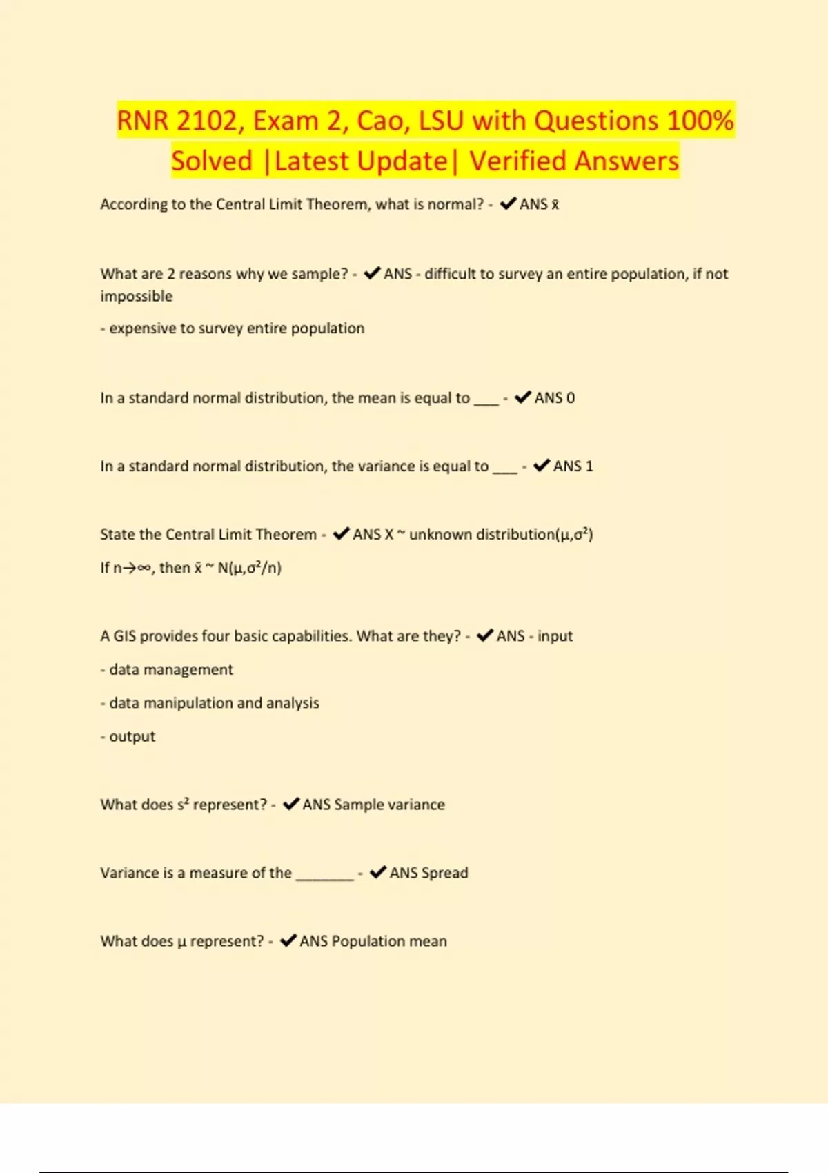 RNR 2102, Exam 2, Cao, LSU with Questions 100% Solved |Latest Update| Verified Answers