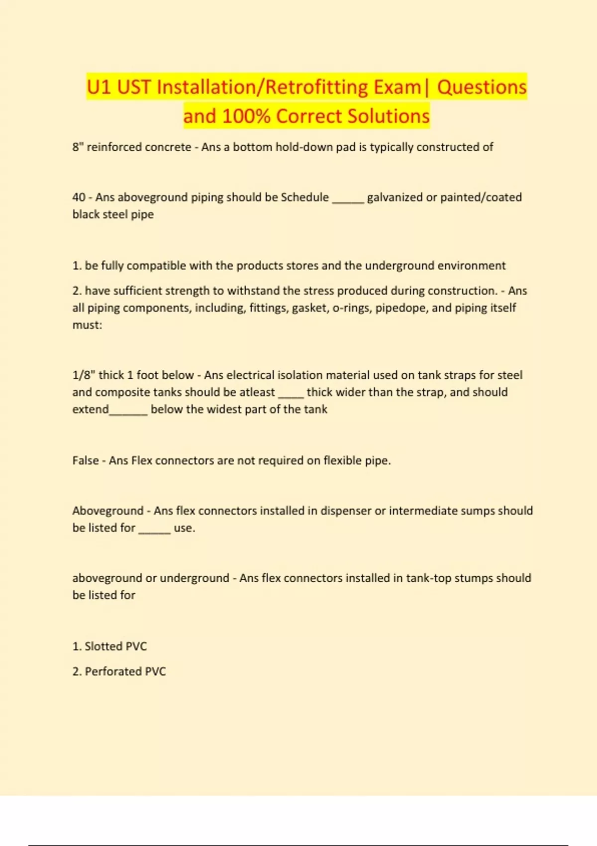 U1 UST Installation/Retrofitting Exam| Questions and 100% Correct Solutions
