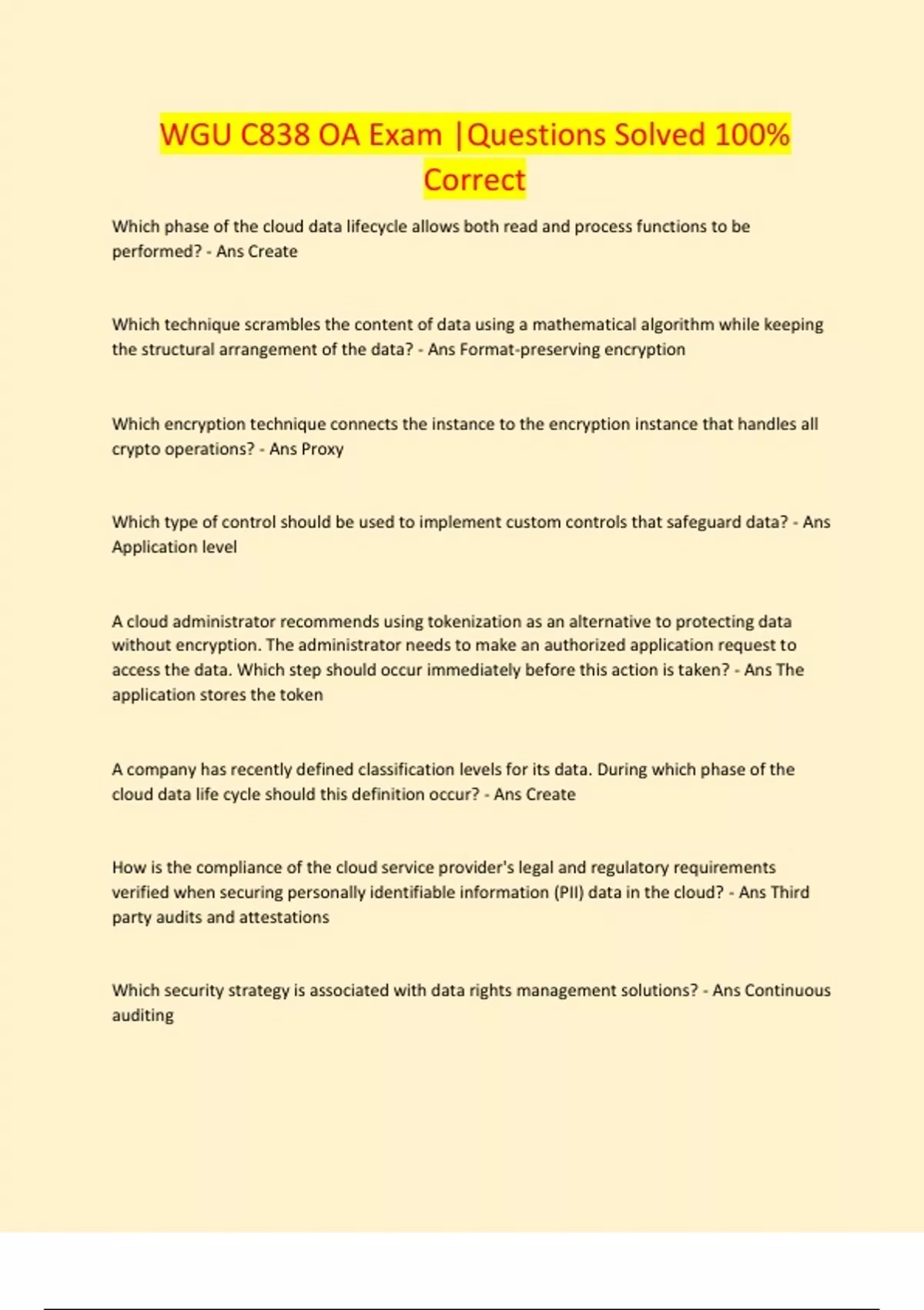 WGU C838 OA Exam |Questions Solved 100% Correct