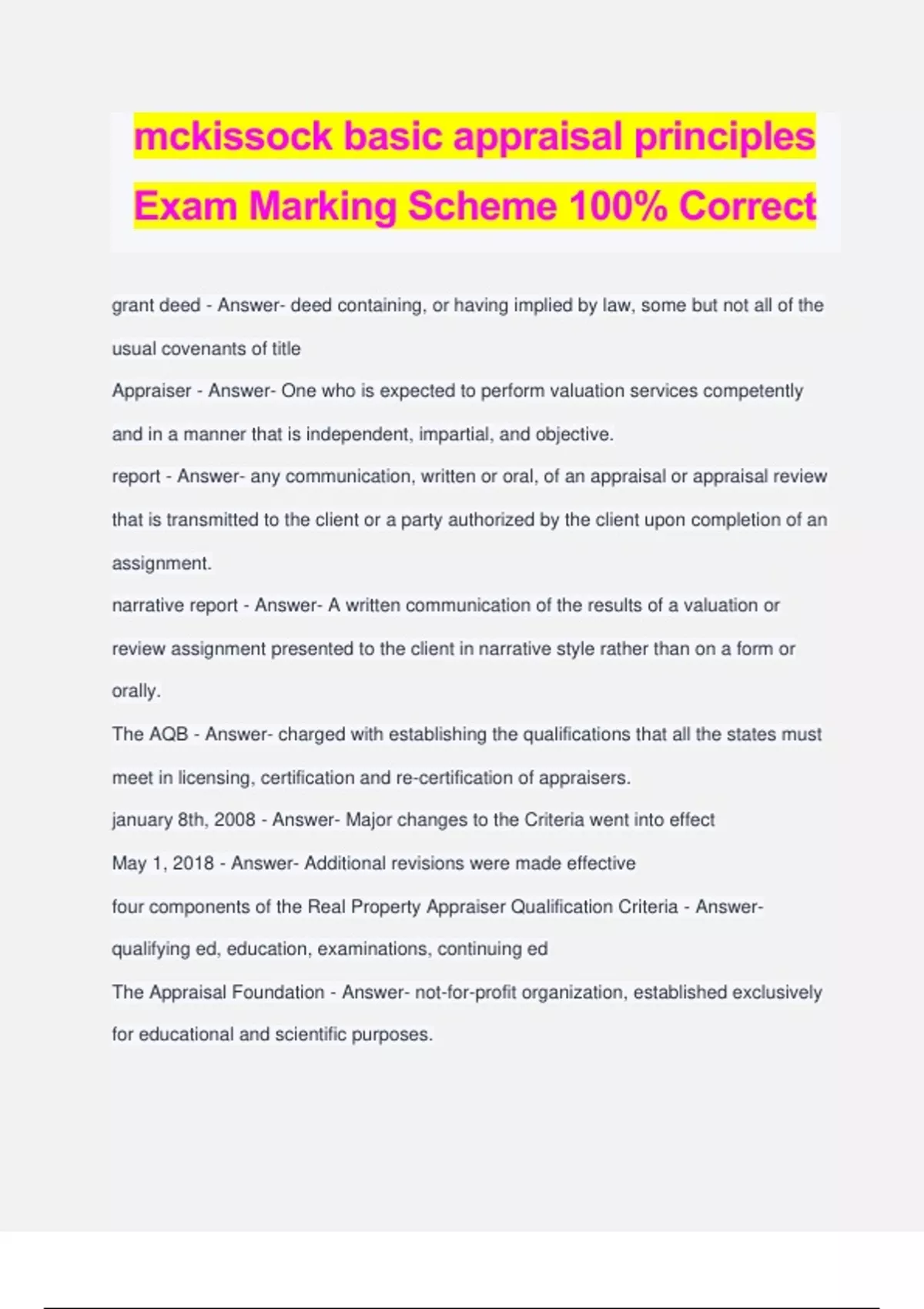 mckissock basic appraisal principles Exam Marking Scheme 100% Correct