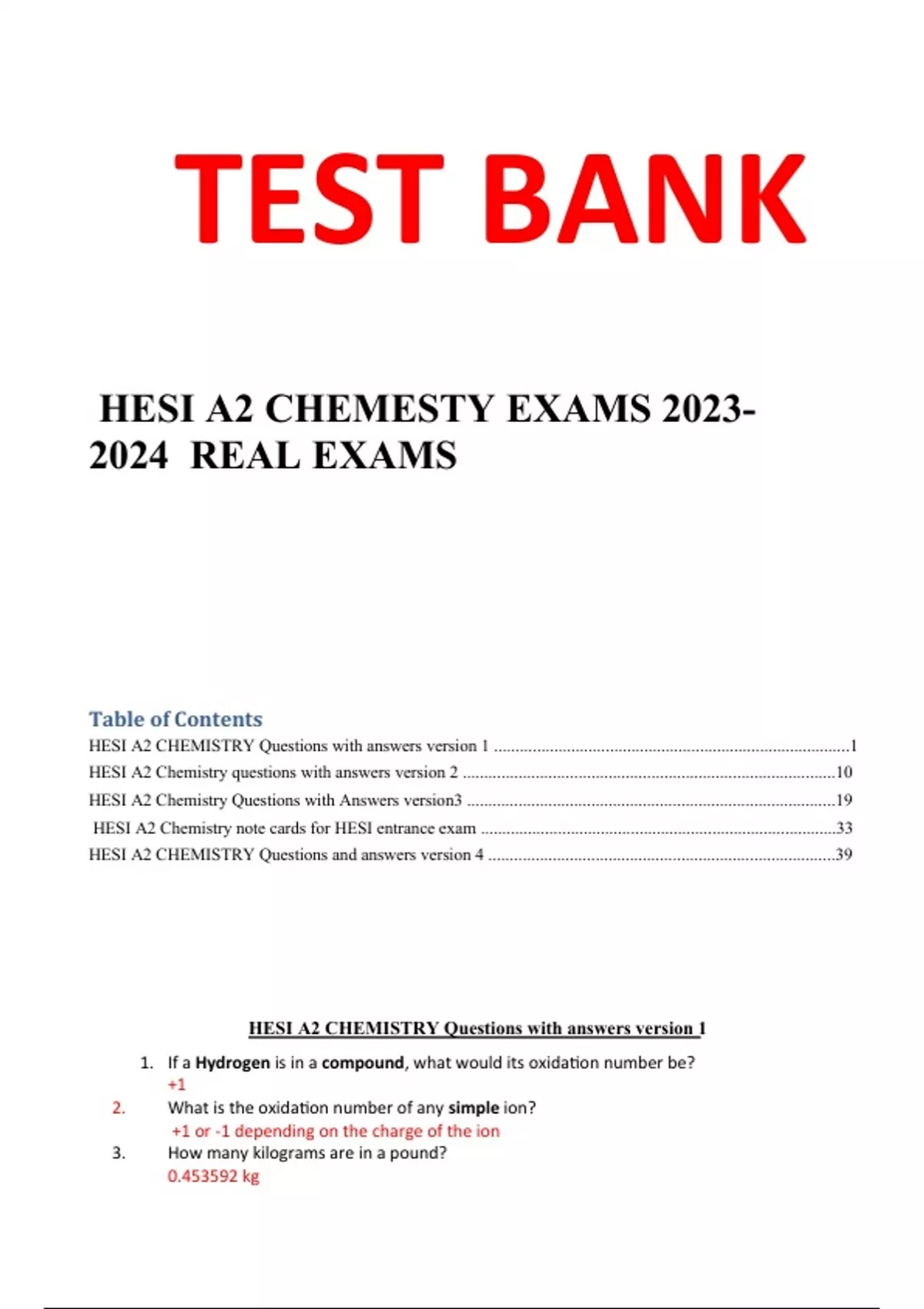 HESI A2 CHEMESTY EXAMS REAL EXAMS