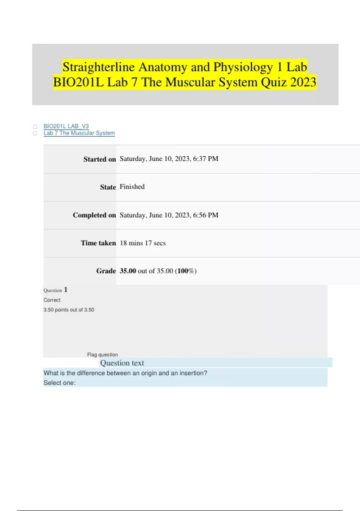 Straighterline Anatomy and Physiology 1 Lab BIO201L Lab 7 The Muscular System Quiz 2023