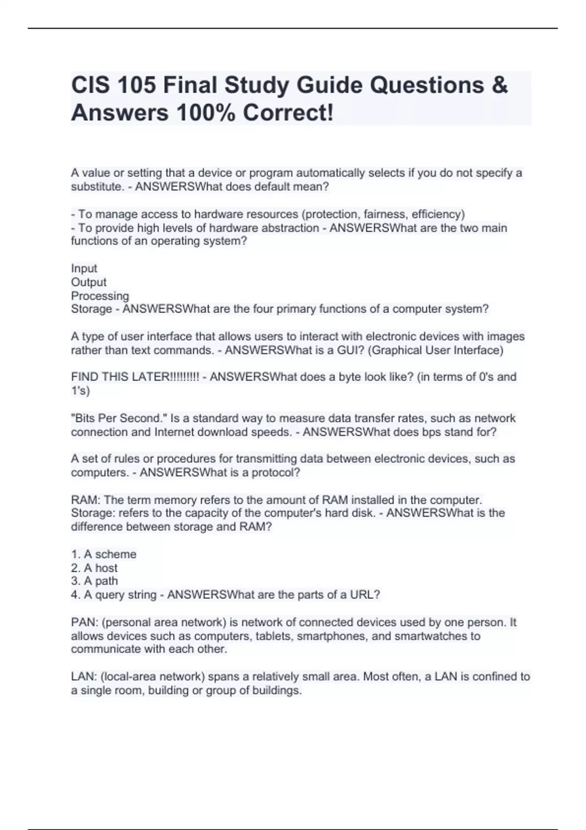 CIS 105 Final Study Guide Questions & Answers 100% Correct!