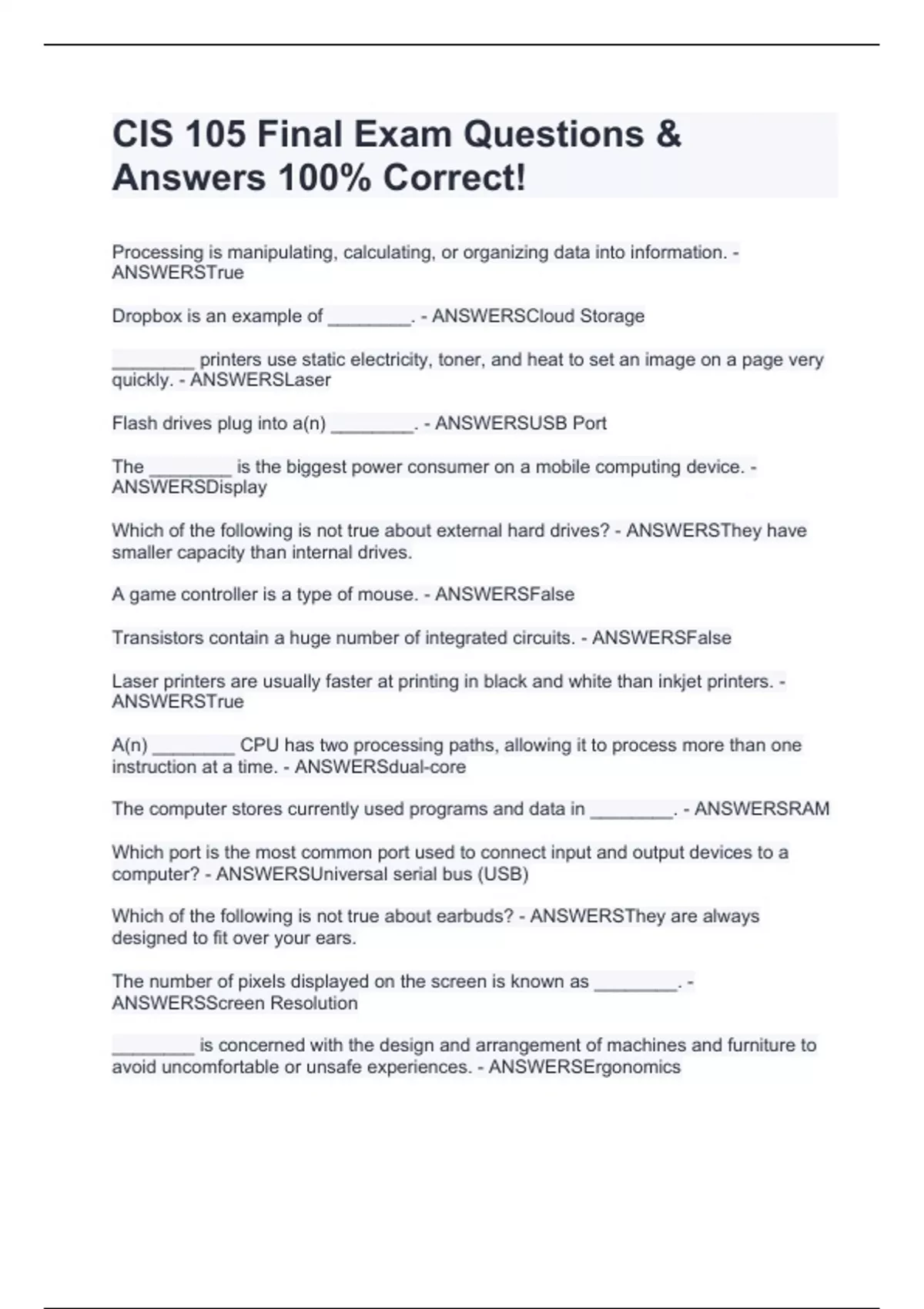 cis 105 final exam questions answers 100 correc