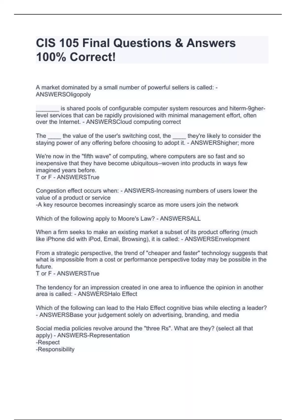 cis 105 final questions answers stuvia