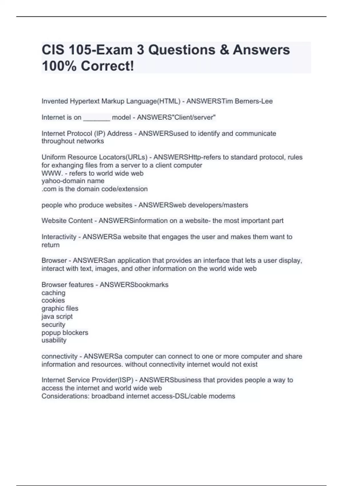 CIS 105-Exam 3 Questions & Answers 100% Correct!
