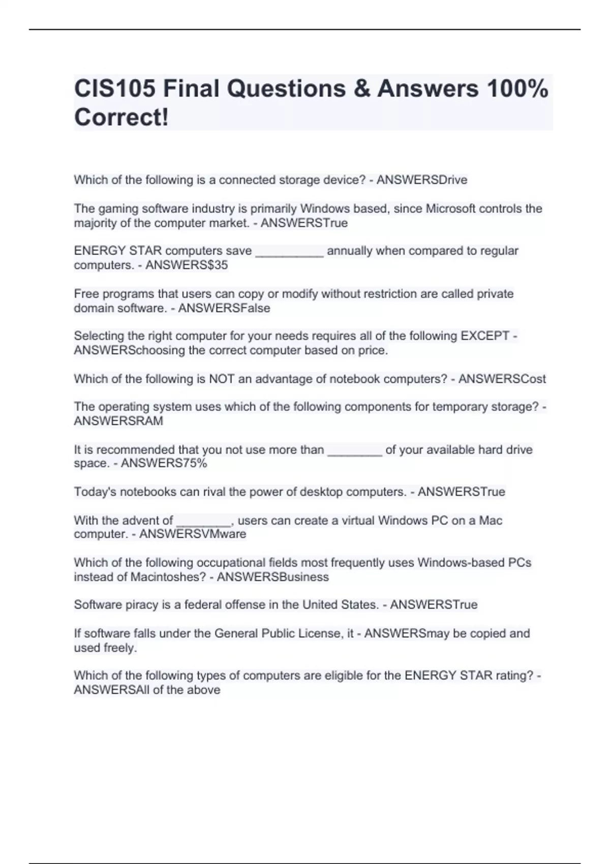 - cis105 final stuvia