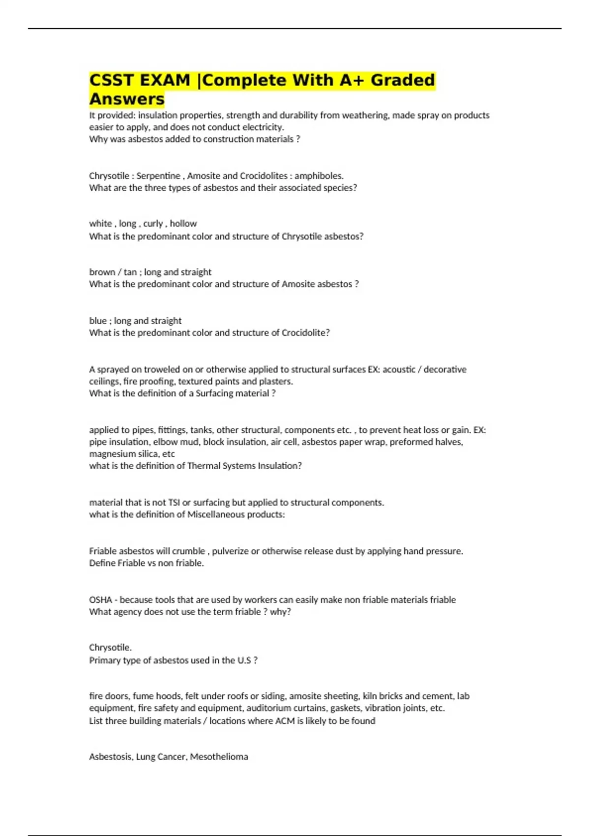 Asbestosis, Lung Cancer, Mesothelioma