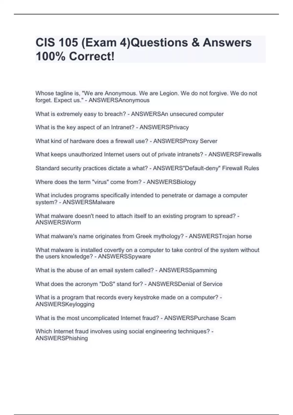 cis 105 exam 4questions answers 100 correct