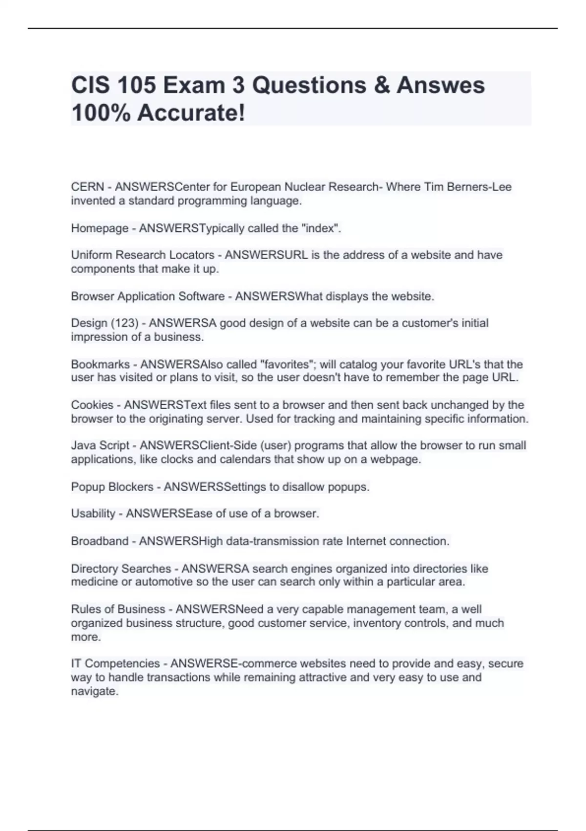 CIS 105 Exam 3 Questions & Answes 100% Accurate!