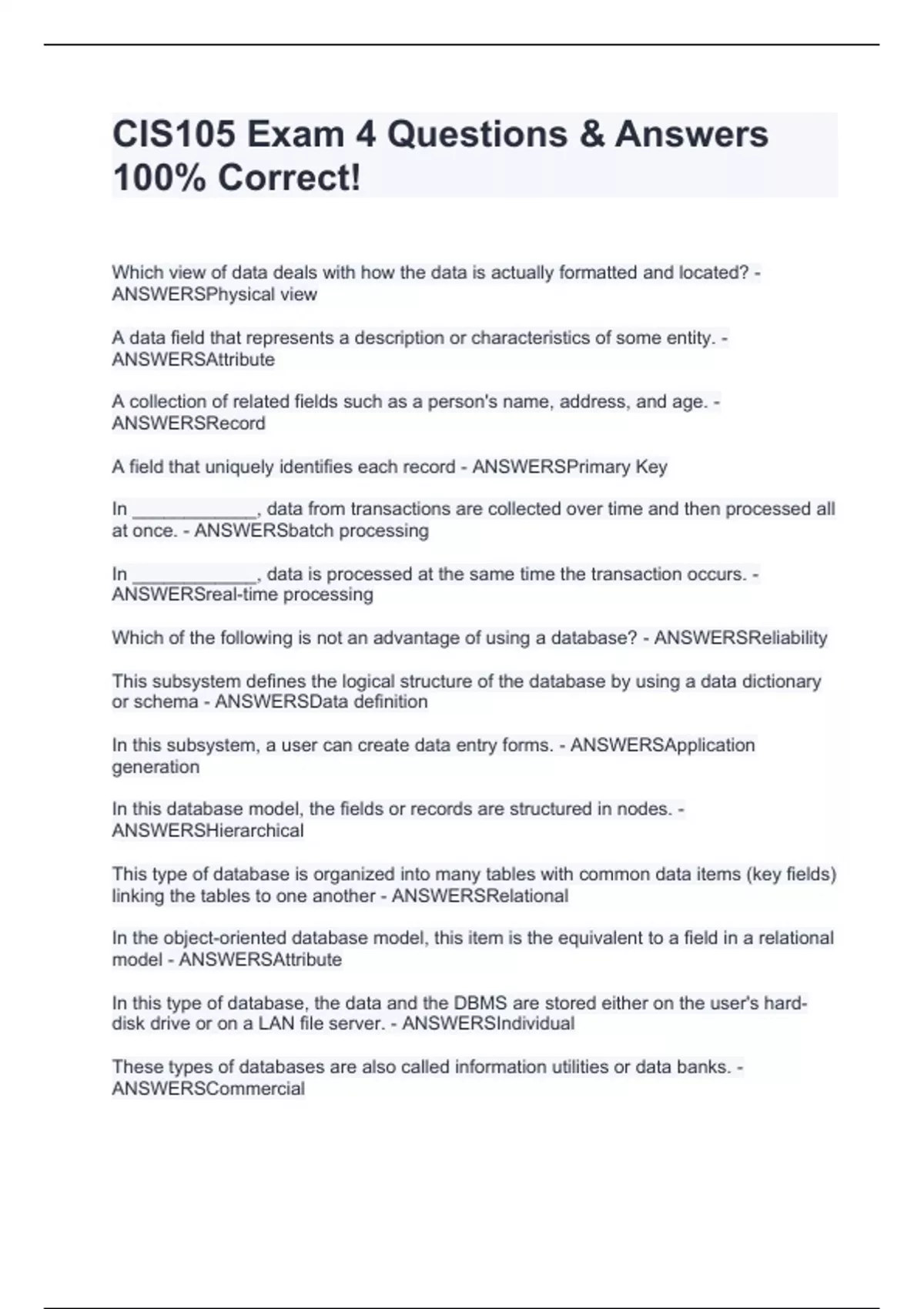 CIS105 Exam 4 Questions & Answers 100% Correct!