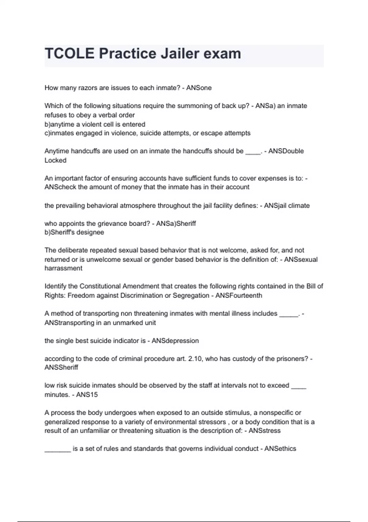 TCOLE Practice Jailer exam questions and answers guaranteed pass 2024/2025