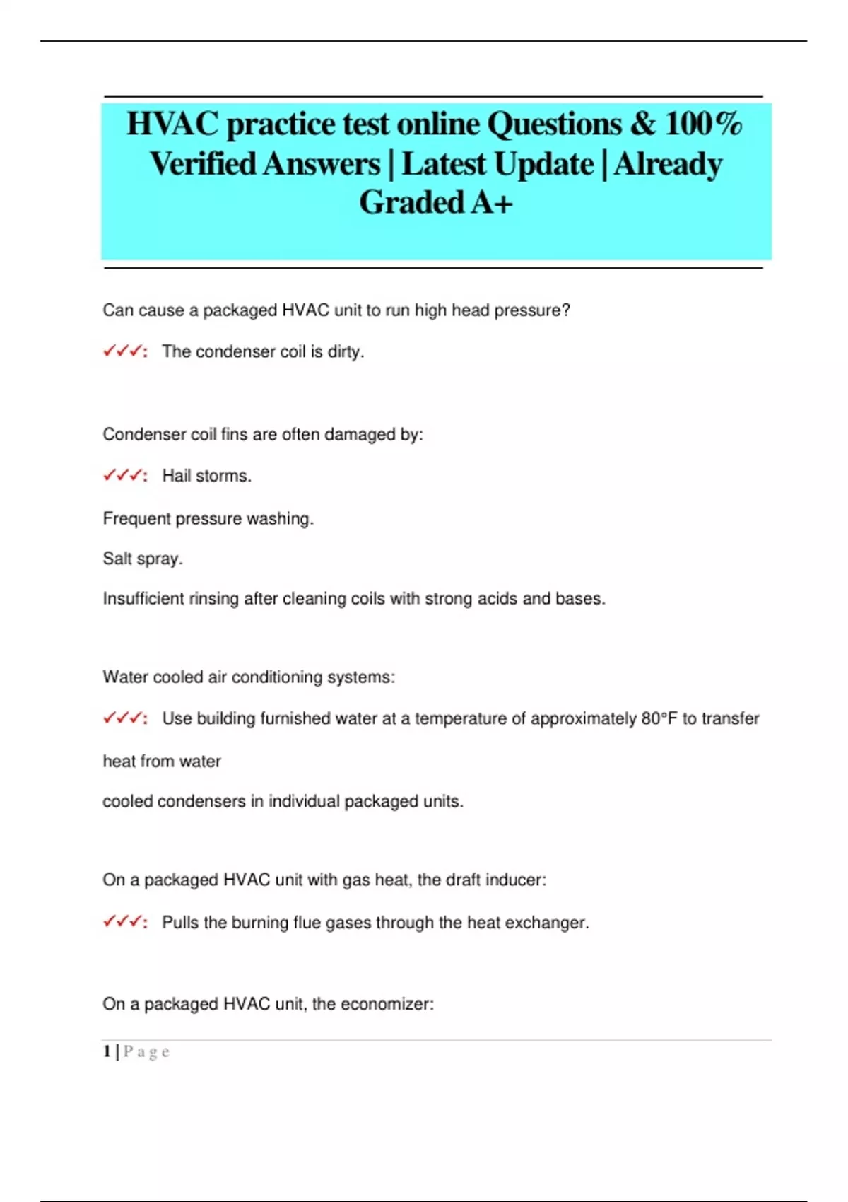 HVAC practice test online Questions & 100% Verified Answers | Latest Update | Already Graded A+