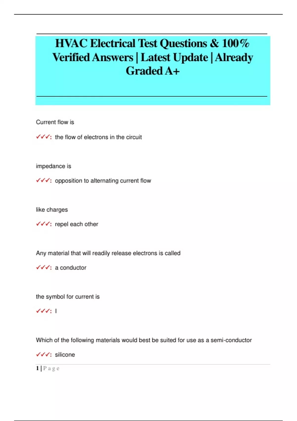 HVAC Electrical Test Questions & 100% Verified Answers | Latest Update | Already Graded A+