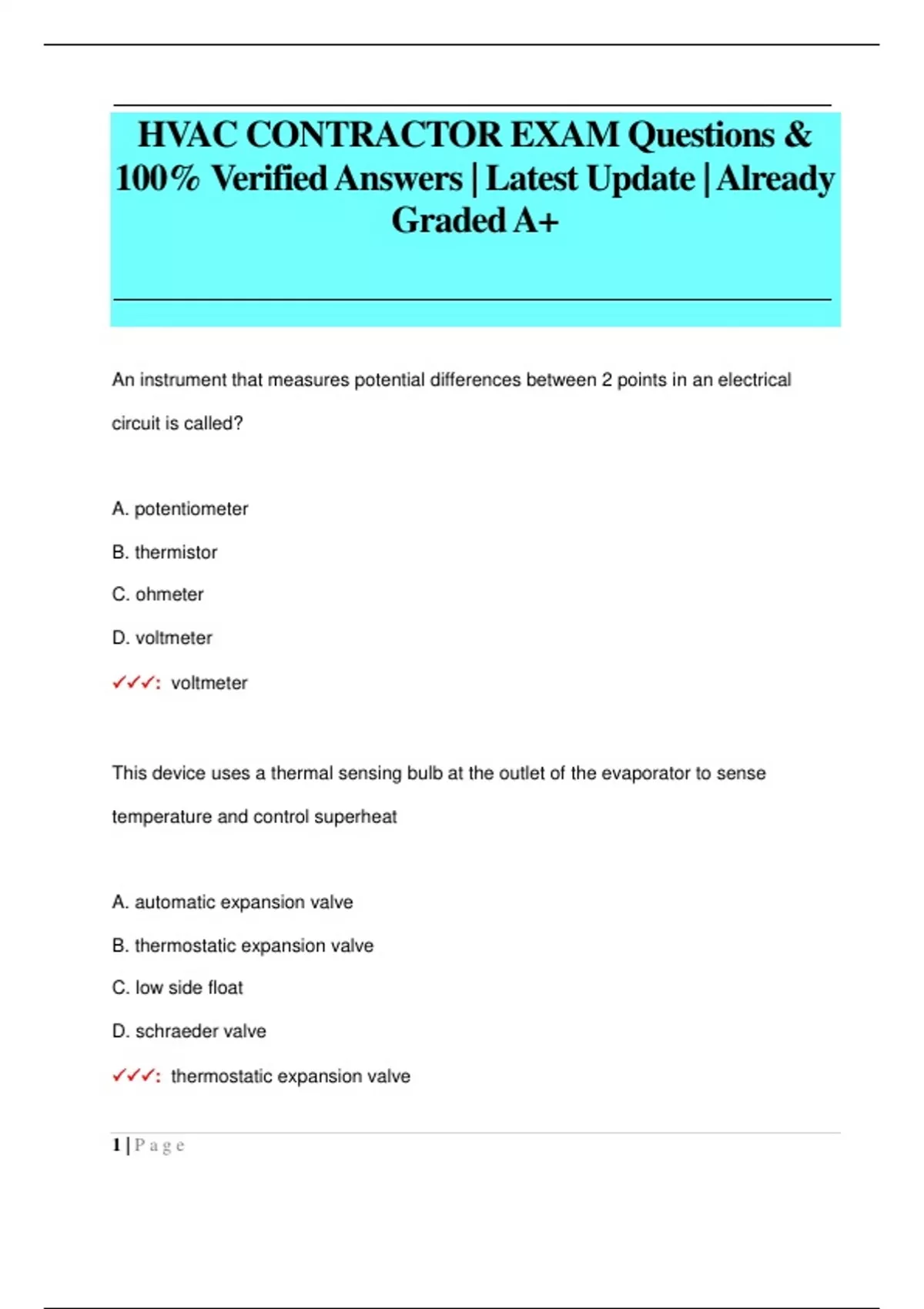 HVAC CONTRACTOR EXAM Questions & 100% Verified Answers | Latest Update | Already Graded A+
