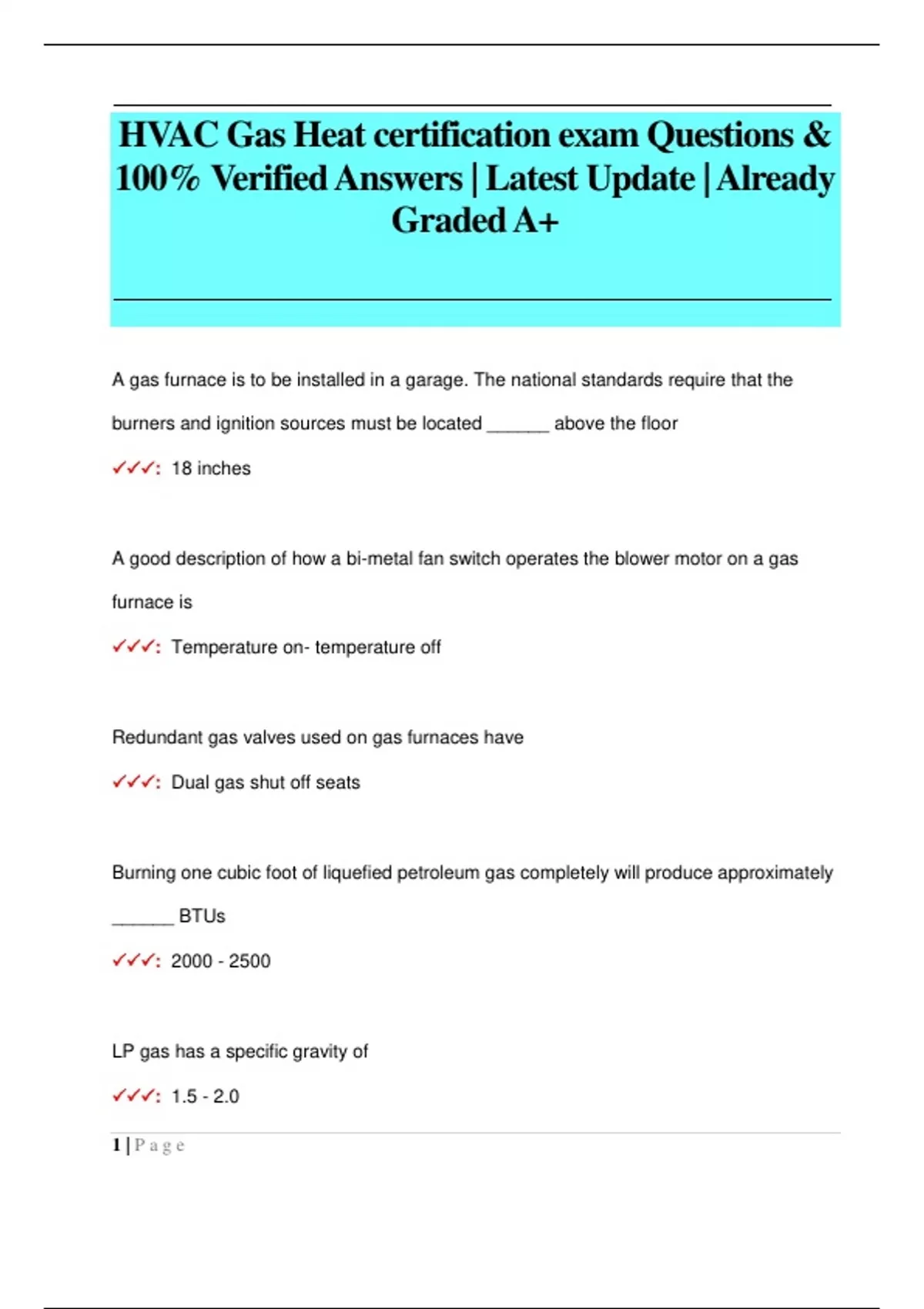 HVAC Gas Heat certification exam Questions & 100% Verified Answers | Latest Update | Already Graded A+