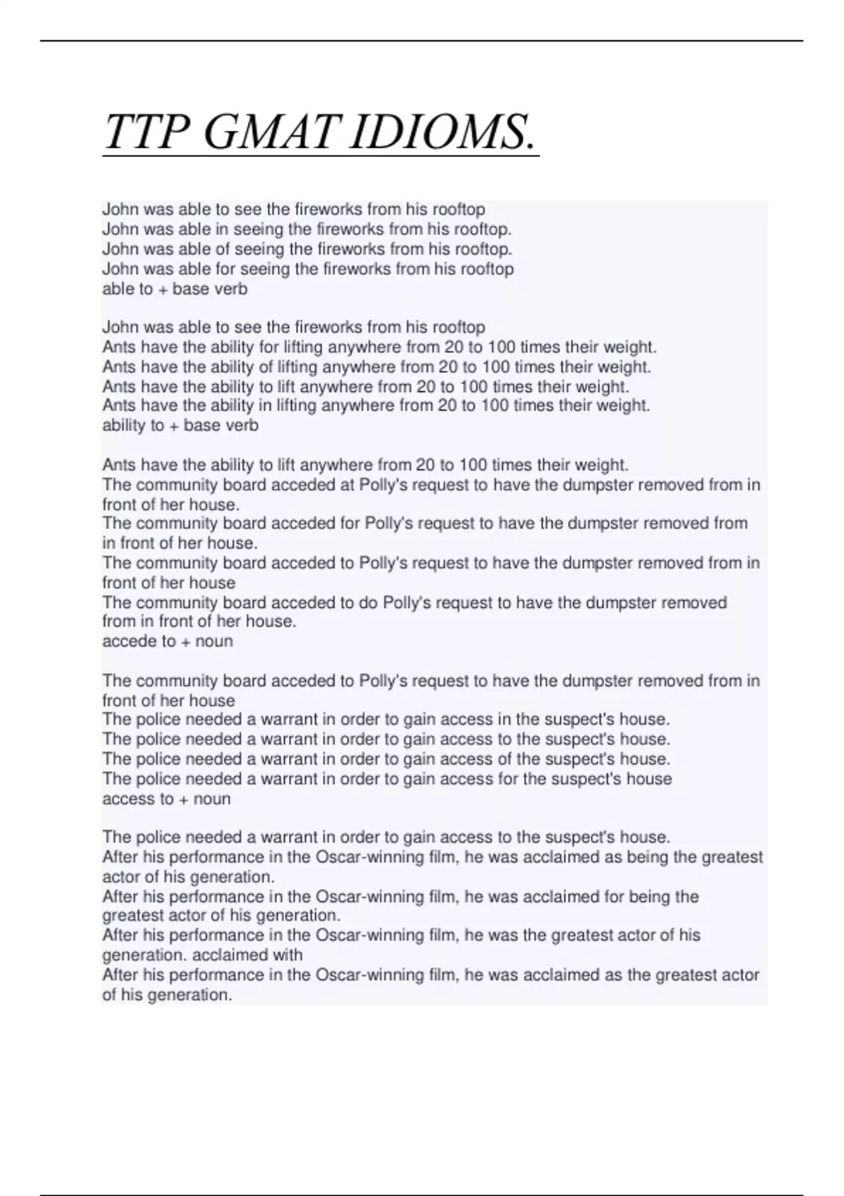 TTP GMAT IDIOMS. Trusted Study Materials for All Testing Exams