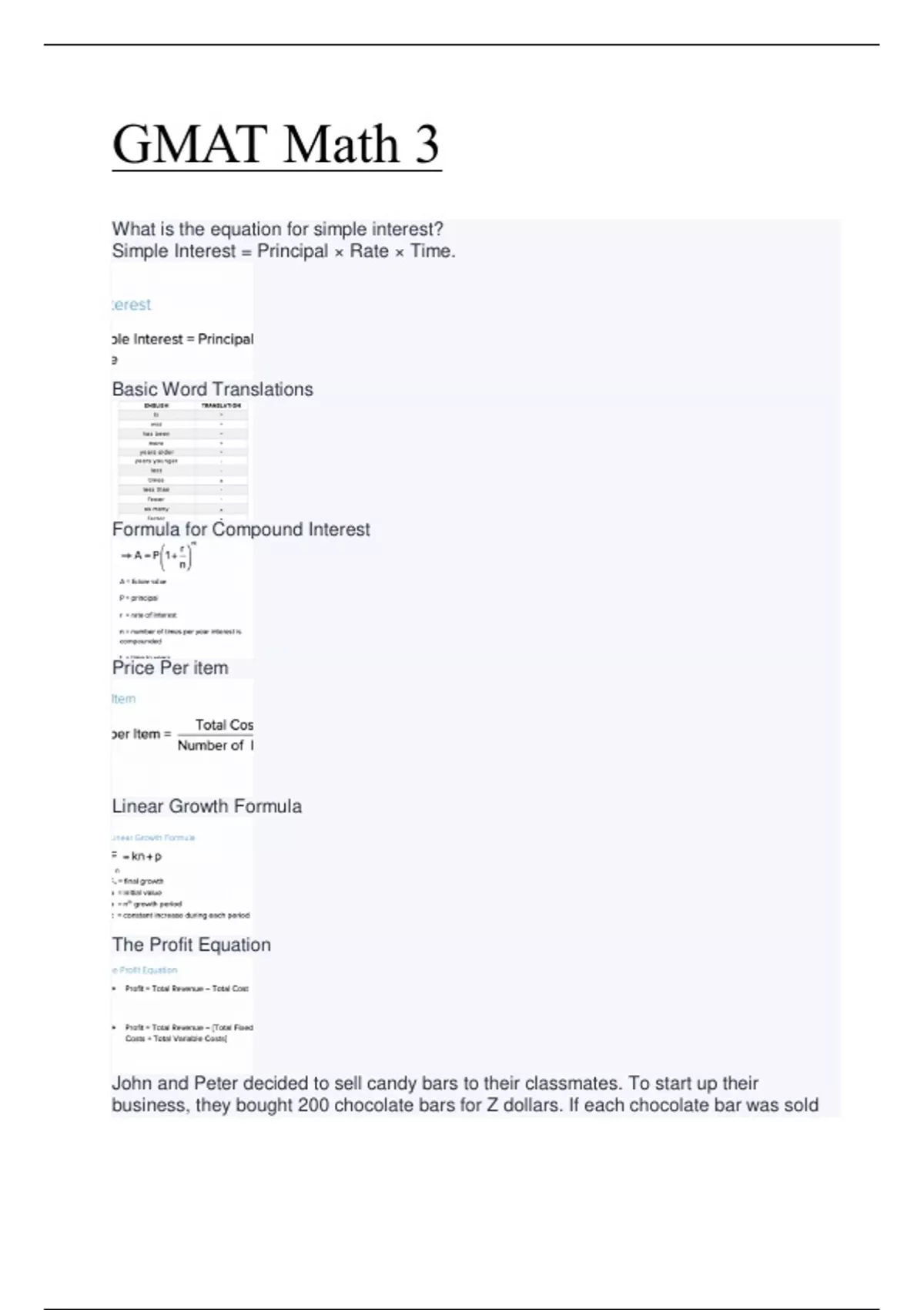 D. x/10 loss E. 2x/5 loss D. x/10 loss To solve: Profit = Revenue - Cost A population of 10 ants grew by a certain factor x each day. What is the value of x? 1. Had the factor been halved, the ants would have grown to a population of 320 in 5 days. 2. The average population growth for the first 5 days was 2,046 ants per day. D. Each statement alone is sufficient A certain store sells milk for x dollars per gallon. If the store purchases the milk for y dollars per gallon, how much per gallon does the store profit from the milk that it sells? 1) The store marks up ever gallon of milk that it sells by 50 percent. 2) x + y = 12 C. Both statements together Carl is a collector of old quarters and nickels. If Carl were to add 12 quarters to his collection, he would have 3 times as many quarters as nickels. Does Carl currently have more quarters than nickels? 1) Carl has more than 6 nickels 2) Carl has fewer than 8 nickels. A. Statement one is sufficient Make sure to do a thorough stem analysis. It never occurred to me to plug the equation into the inequality. Stem analysis Is Q>N Q+12 = 3n Q = 3n - 12 3n - 12 > N 2n > 12 n > 6 Is N > 6? Statement 1 n>6 YES Statement 2 N < 8 N.S. A car dealership had p cars in stock on Monday morning. By Monday at noon, the dealership had sold 1/z of its cars in stock, and by Monday at 5PM the dealership had sold 1/y of the remaining cars. If the dealership sold no other cars on Monday, which of the following properly expresses the number of cars that the dealership has in stock at the end of the day on Monday. Answer: p(yz-y-z+1)/zy To solve (pz-p)/z - [(pz-p)/z]* (1/y) Note; You have to start with p - (1/z)*p Molly purchased $5,000 worth of a short-term municipal bond that matures in one year. The bond pays an annual interest of 10 percent compounded semi-annually. A