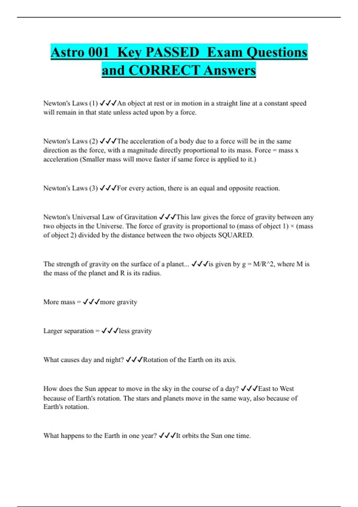 Astro 001 Key PASSED Exam Questions and CORRECT Answers