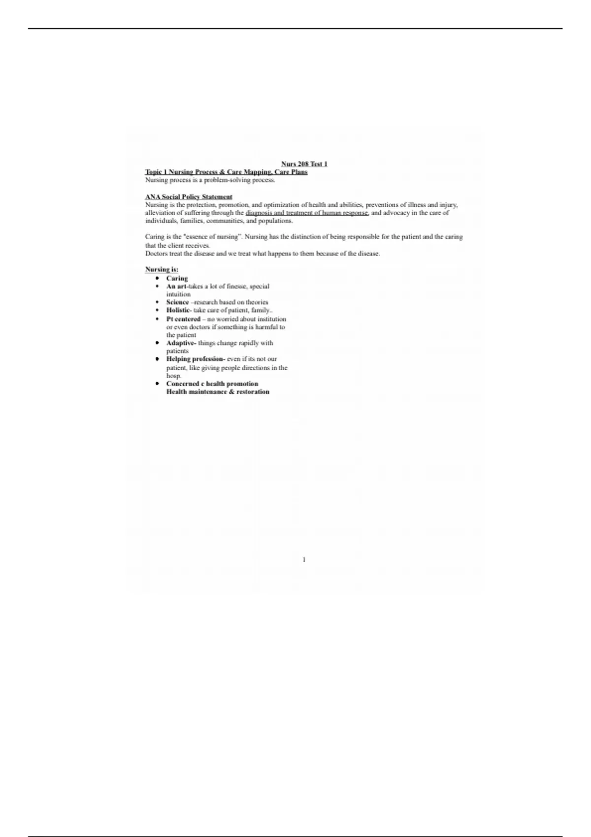 This is a comprehensive and detailed note for test 1 in Nurs 208. U can't afford to miss this, Cuz it will help to ace your exams and boost your grades, at a price that's worth it!!