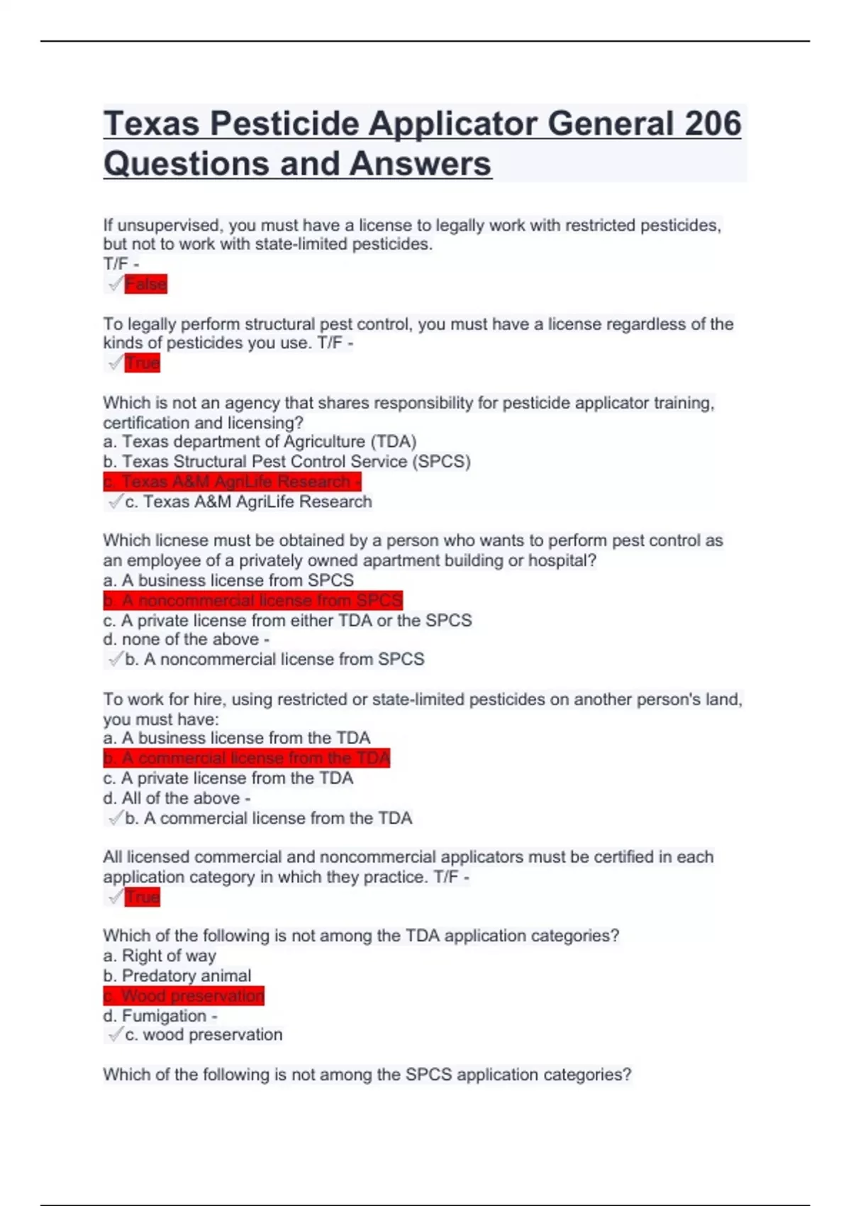 Texas Pesticide Applicator General 206 Questions and Answers.