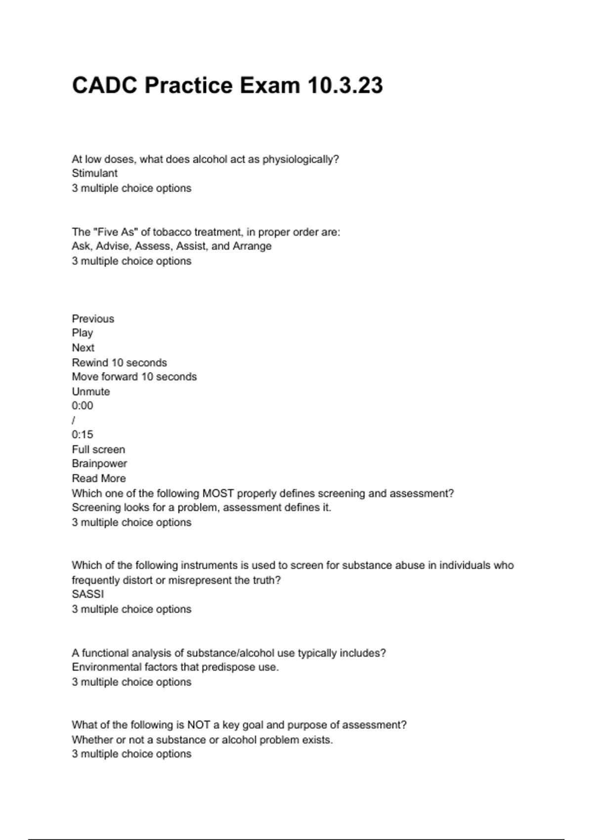 CADC Practice Exam 10.3.23 questions and answers guaranteed pass 2024/2025