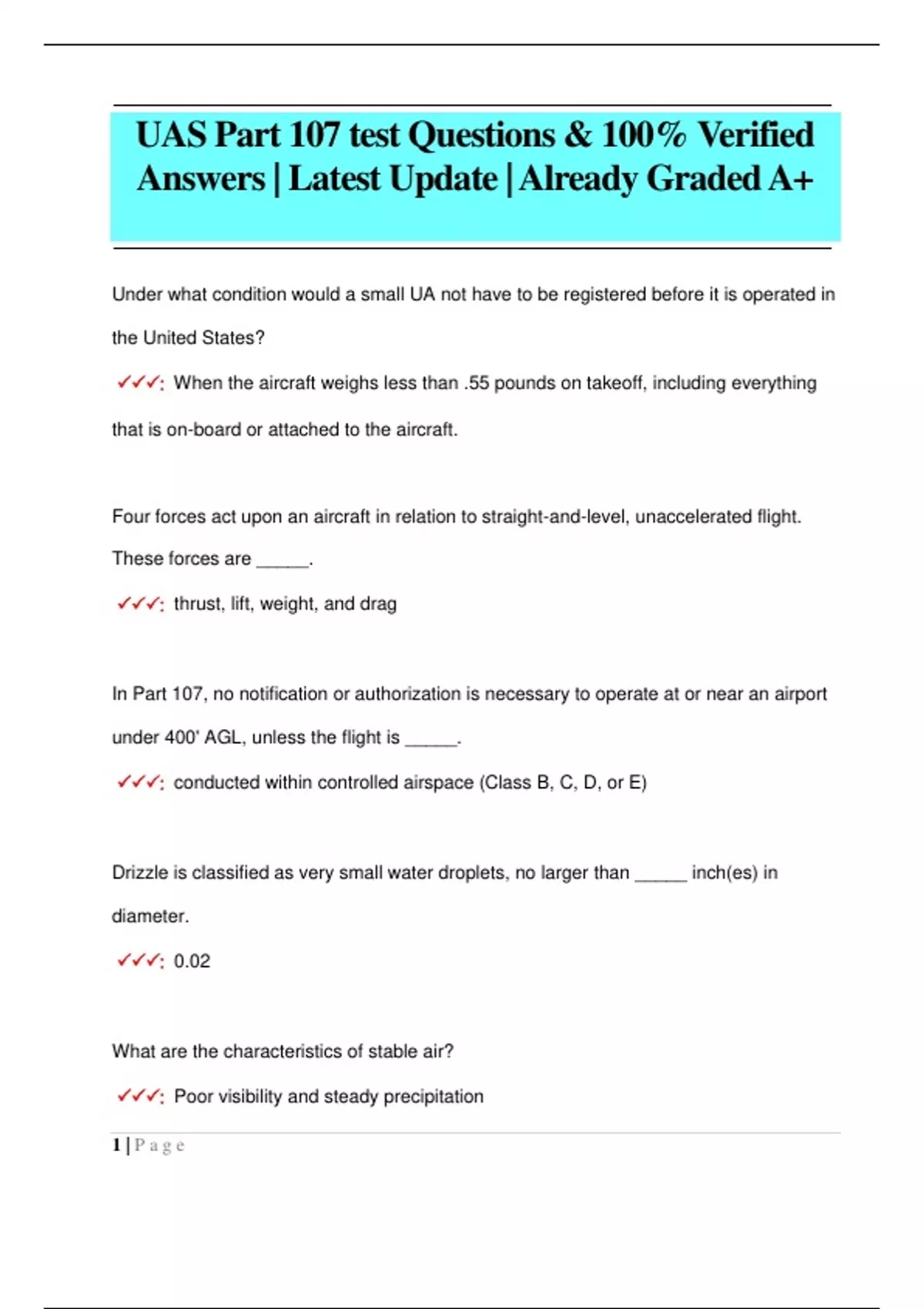 UAS Part 107 test Questions & 100% Verified Answers | Latest Update | Already Graded A+